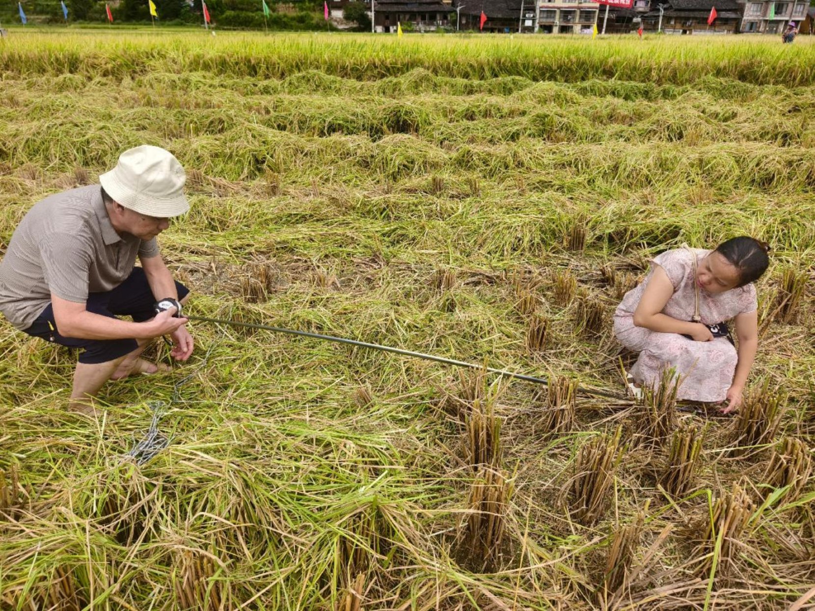为精准掌握机收损失情况,龙胜各族自治县组建监测调查小组,在平等镇广南村开展机收地块随机抽样实测。工作人员现场记录单位面积产量、取样区损失量,经测算,全县水稻单位面积产量达567千克,取样区损失率仅1.5%。详实的实测数据,不仅摸清了辖区机收损失“家底”,更为后续优化减损措施提供了科学依据。