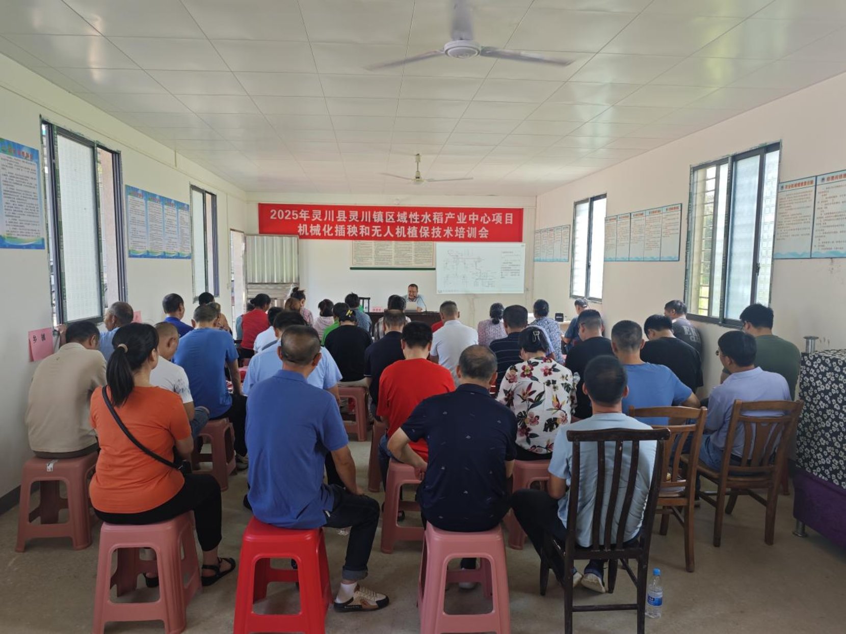 为提升水稻机械化种植水平,助力农民增产增收,近日,桂林市灵川县农机中心在县绿竹种植专业合作社成功举办了一场别开生面的水稻机插和无人机植保技术培训会。来自全县各乡镇的农机工作负责人、合作社代表、种粮农户及县农机中心农技人员等共56人参加了此次培训,共同开启了一场农业科技的学习之旅。