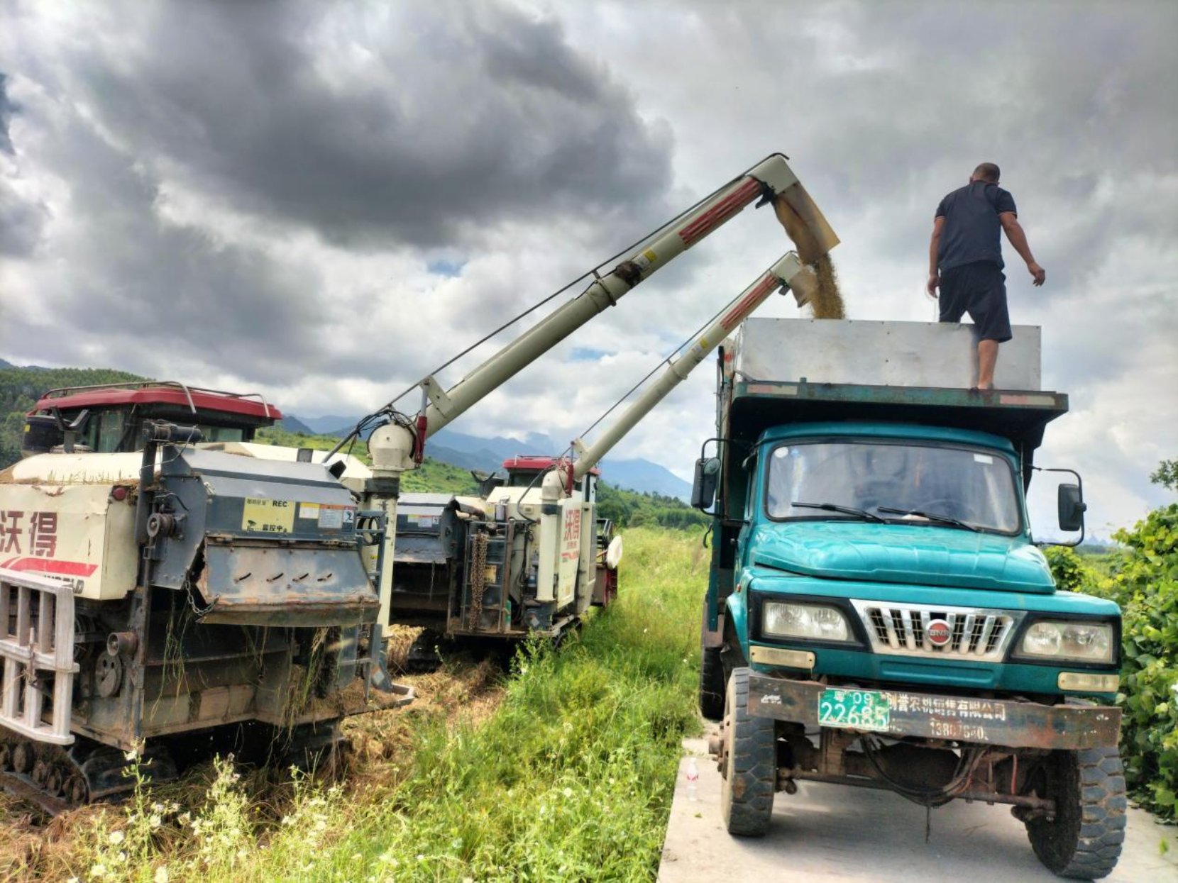 近日,桂林市恭城瑶族自治县2025年水稻机收减损技能大比武在龙虎乡拉开帷幕。4台不同品牌与型号的联合收割机整齐列队,农机手们驾驶机械穿梭于金黄稻田,收割、脱粒、秸秆粉碎等工序一气呵成。伴随机器轰鸣,稻谷尽数归入机身,只留规整稻茬;待收割机停靠地头,卸粮筒顺势伸出,饱满的金黄稻粒喷涌而出,稳稳落入运粮车中,展现出高效的农机作业场景。