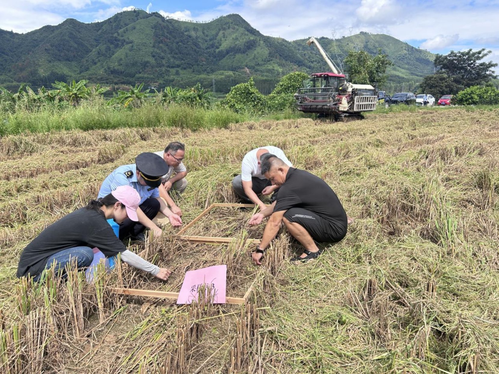 此次大比武以粮田为“赛场”,将安全意识、作业质量、收割流畅度与减损效果作为核心比拼维度,旨在以赛促练,推动农机手提升操作水平,切实保障粮食颗粒归仓。收获作业结束后,工作人员立即携带取样工具进入作业区,在随机选定的测评区域内,细致捡拾田间掉落、稻秆夹带及漏割的稻粒并统一称重,再结合平均亩产精准计算出机收损失率,确保比武结果科学公正。