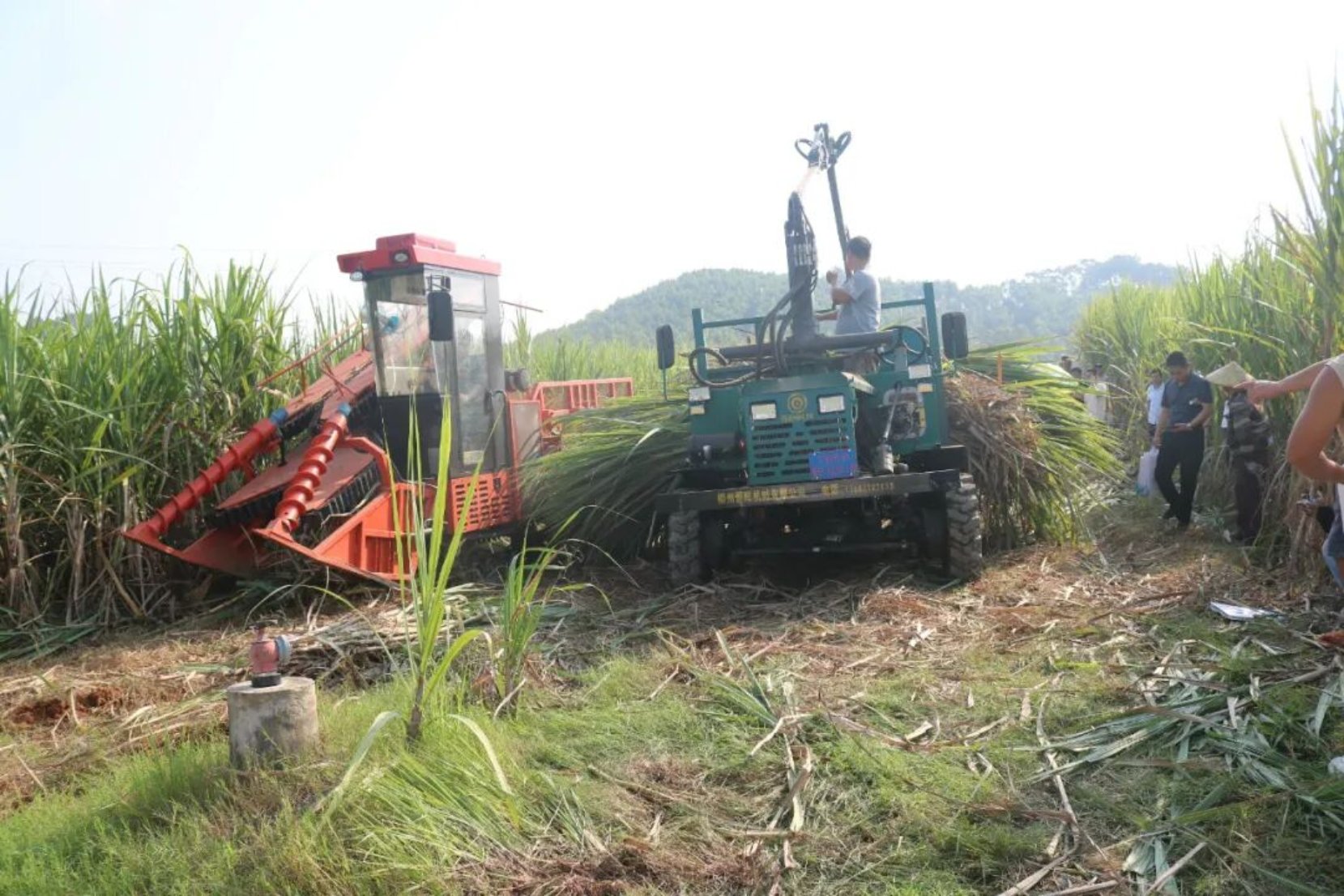 活动现场,甘蔗割堆机率先“登场”,灵活地穿梭在蔗田间,高效地完成甘蔗收割作业,整齐地将甘蔗堆放在指定区域。随后,抓机紧密配合,迅速将成堆的甘蔗装车,整个过程一气呵成,展示了机械化作业的高效与便捷,赢得现场阵阵赞叹。