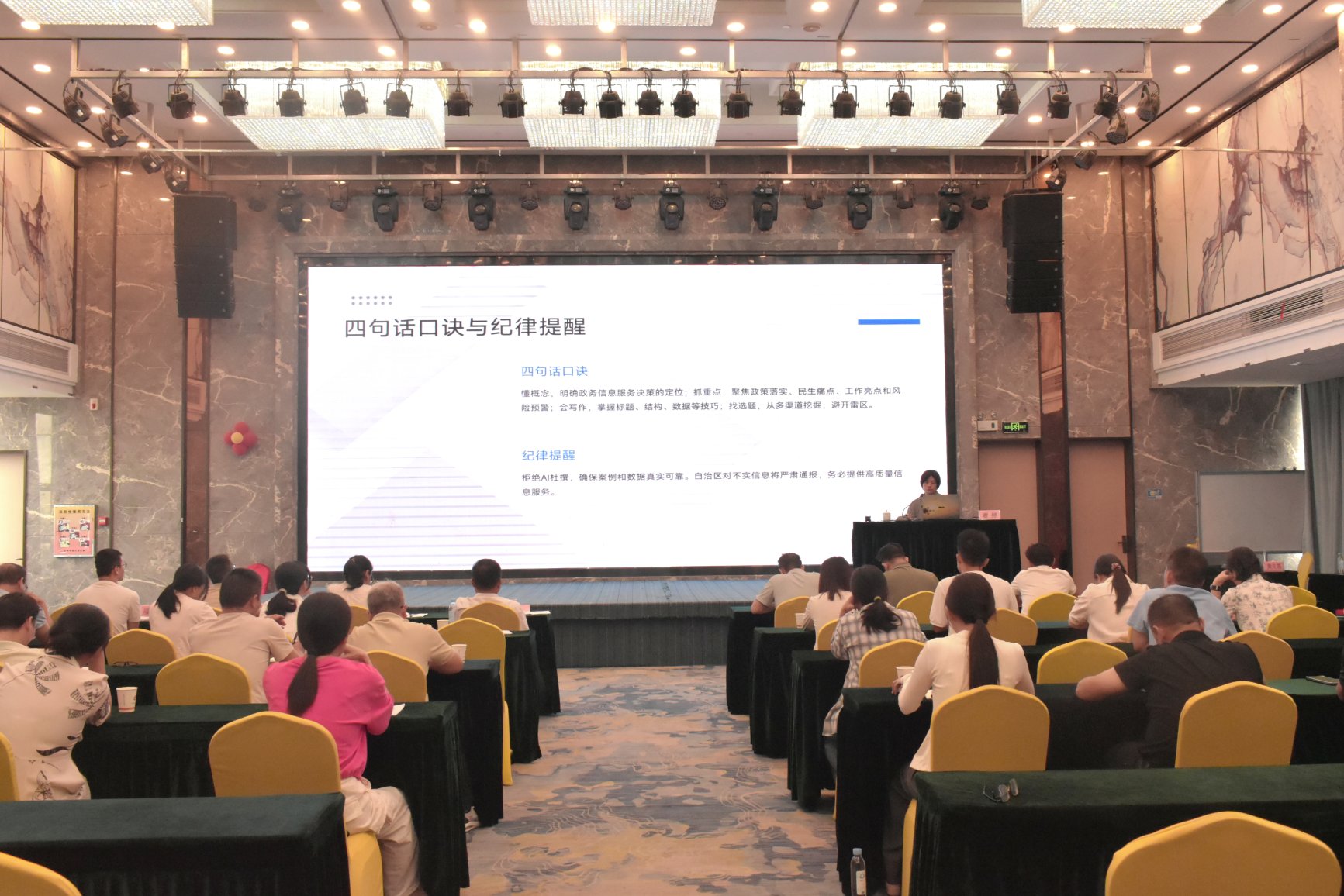 培训班邀请了自治区农机中心标信部二级调研员黄文莲、玉林市政府办信息调研科副科长谢婷分别就农机宣传与防范化解意识形态风险、政务信息编撰报送等方面进行授课。
