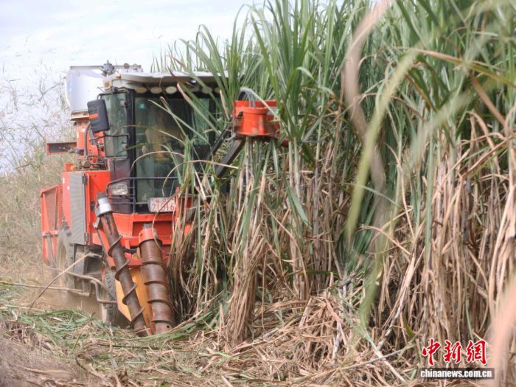 农机手操作机械收割甘蔗。汤晓逵 摄