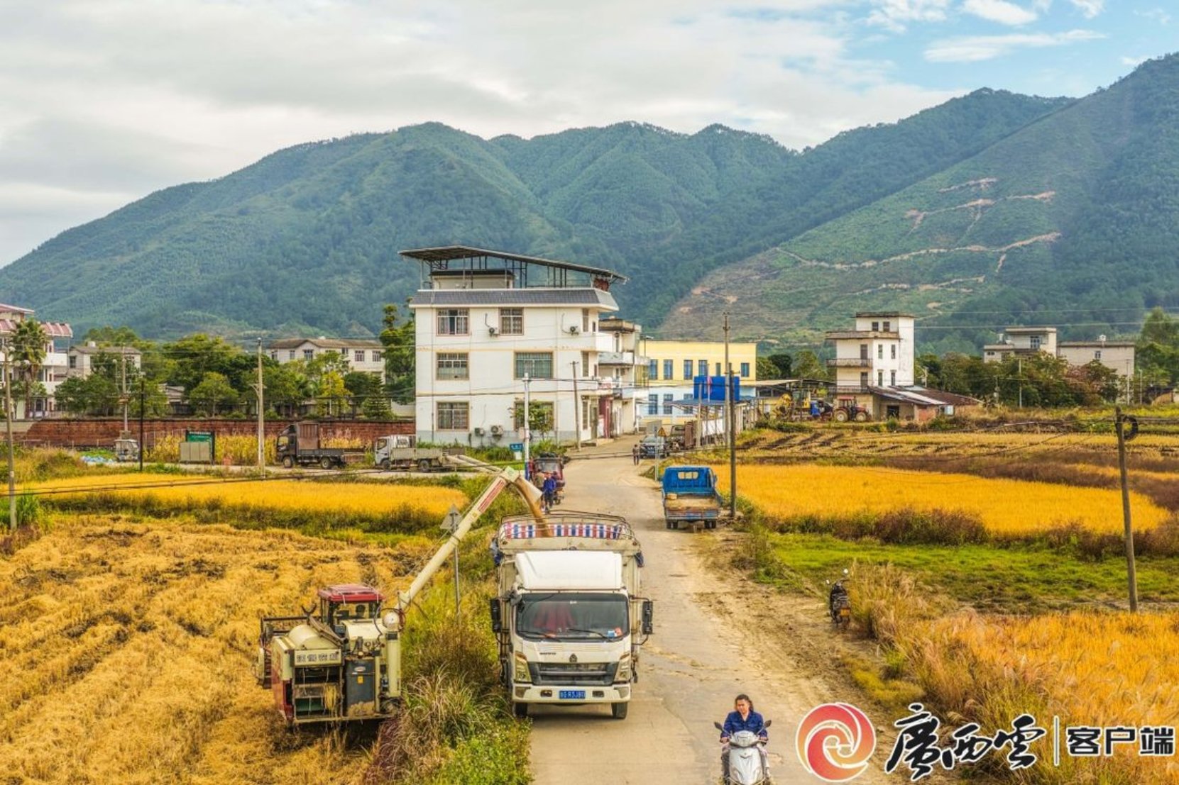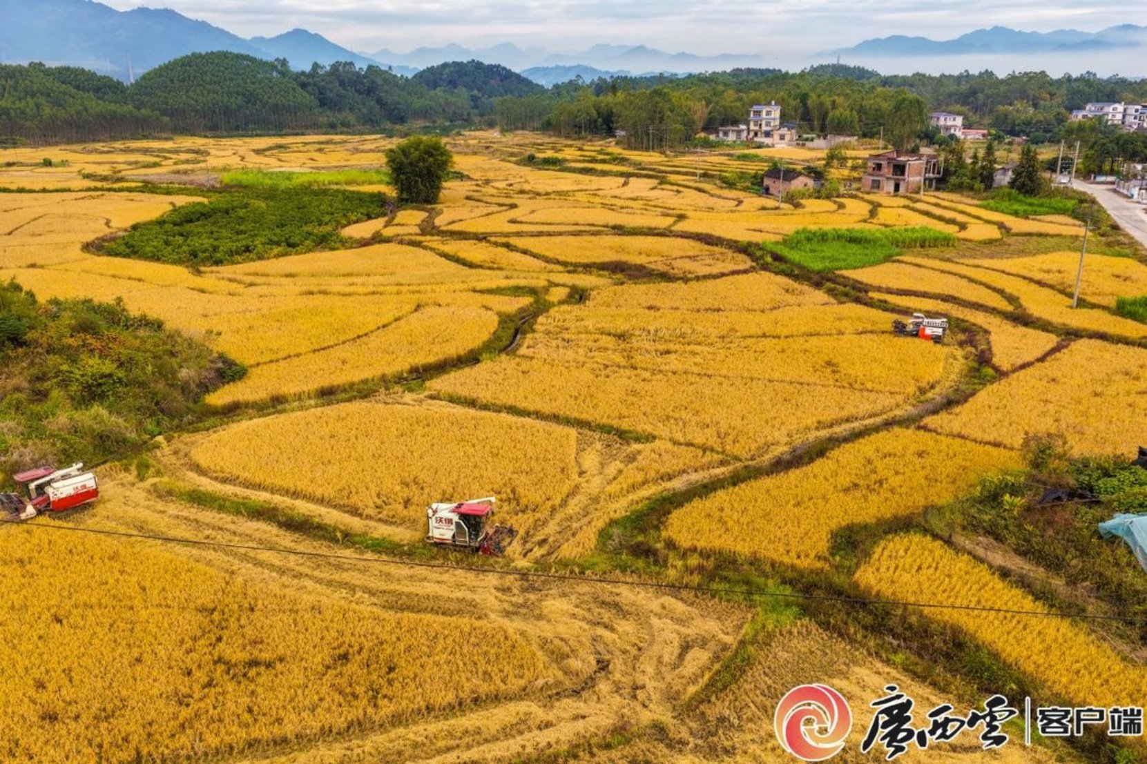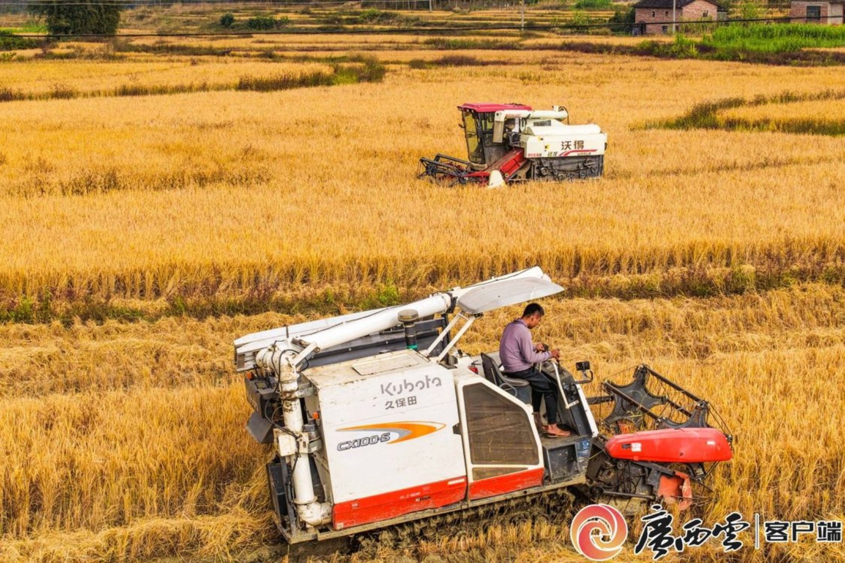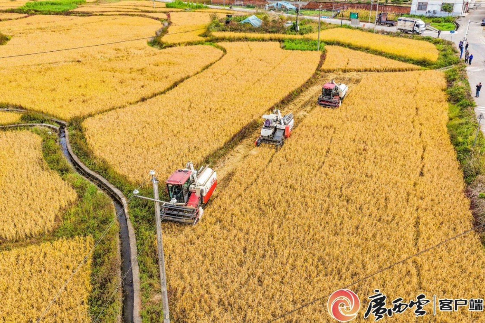 11月30日,梧州市蒙山县文圩镇桃垌村高标准农田农民驾驶联合收割机抢收今年最后一批迟熟晚稻。今年,蒙山县不断扩大晚稻种植面积,种植高产优质迟熟晚稻品牌,水稻生长期长实现稳产高产。
