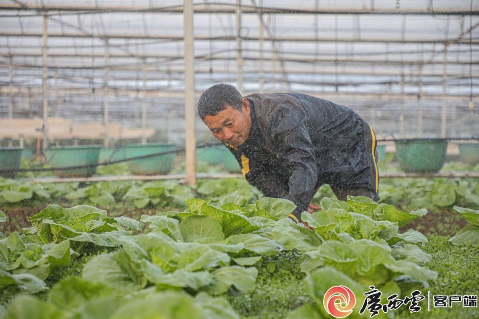 农户在蔬菜棚里清理杂草。阳海翔 摄