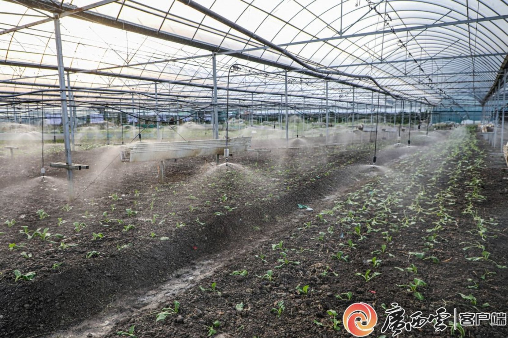 雾化喷淋设备正在为作物补水保湿。阳海翔 摄