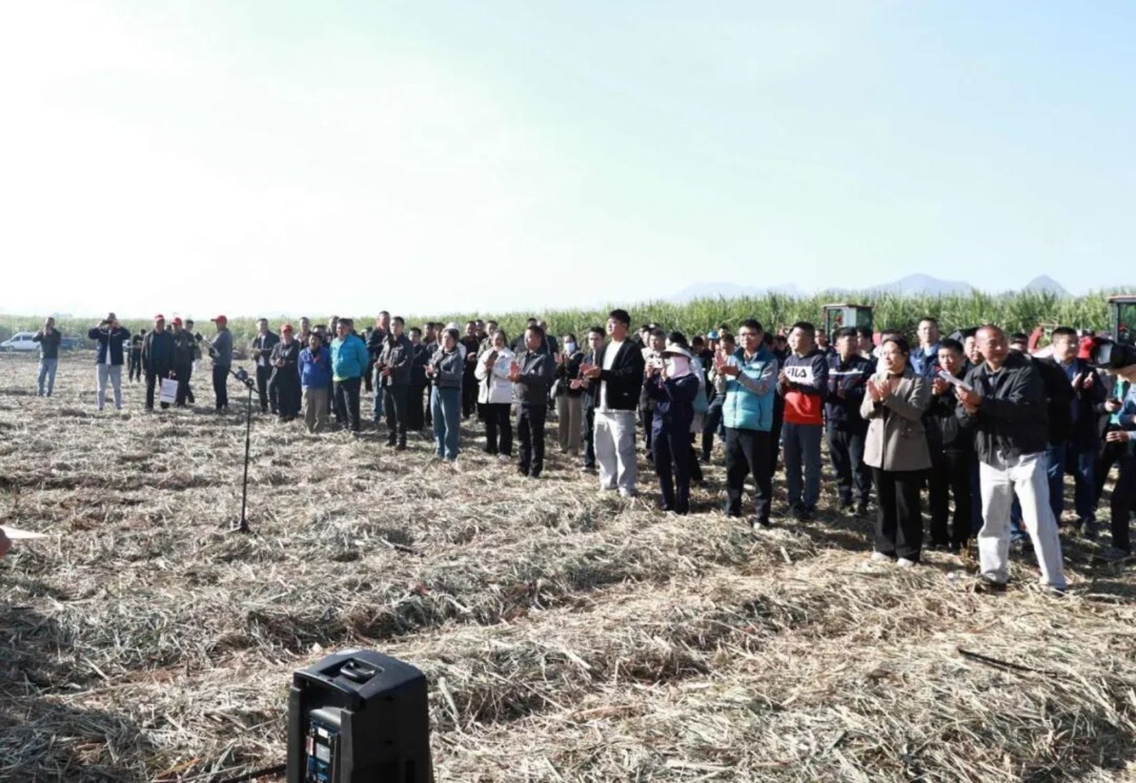风吹蔗海,机械轰鸣。11月28日,2025年柳州市糖料蔗机械化收获机具现场演示会,在柳江区新兴工业园兴柳路糖厂自营甘蔗地举办。全市各县区农机工作者与蔗农代表齐聚一堂,共同观摩10台机收设备与5台移动式除杂设备协同作业的高效场景。