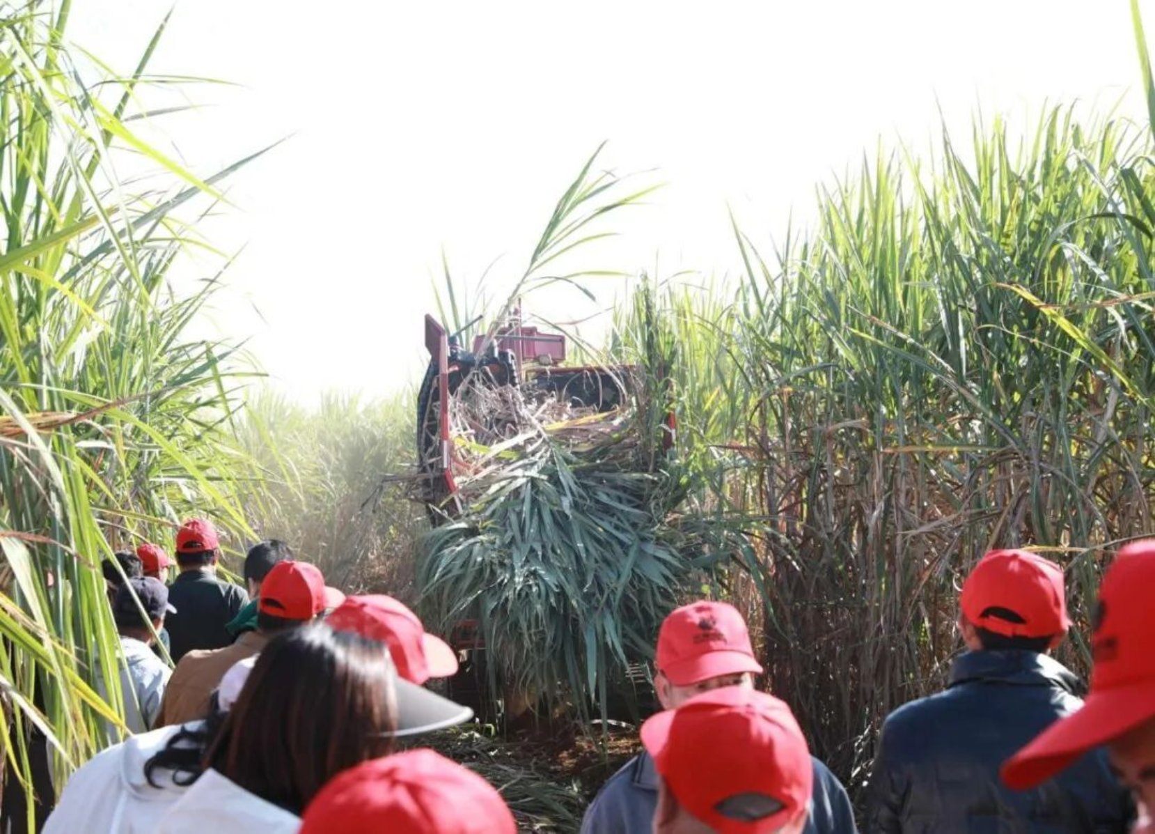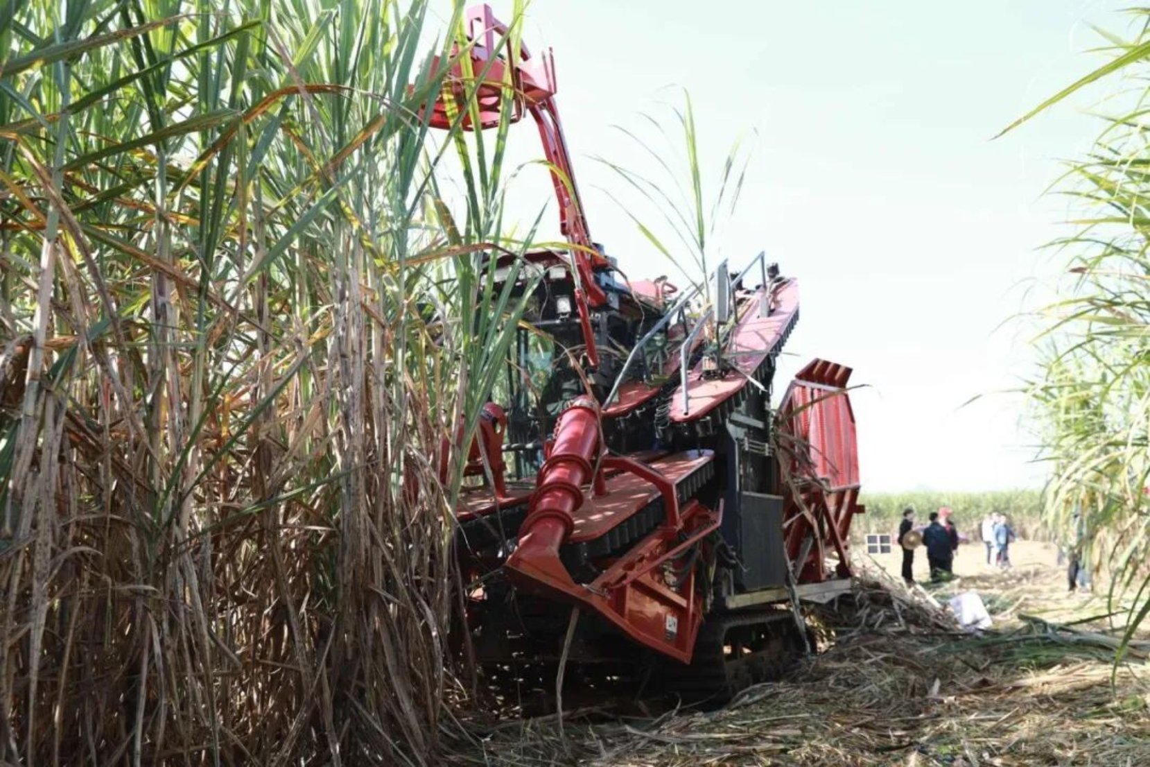 演示现场,农机穿梭往复,切割、剥叶、归集一气呵成。新款甘蔗割堆机首次亮相便备受关注。“这款设备专为丘陵山区设计,10小时可收割20亩,还能精准保留蔗根。”江苏沃得农业机械股份有限公司甘蔗机产品经理高于众介绍道。