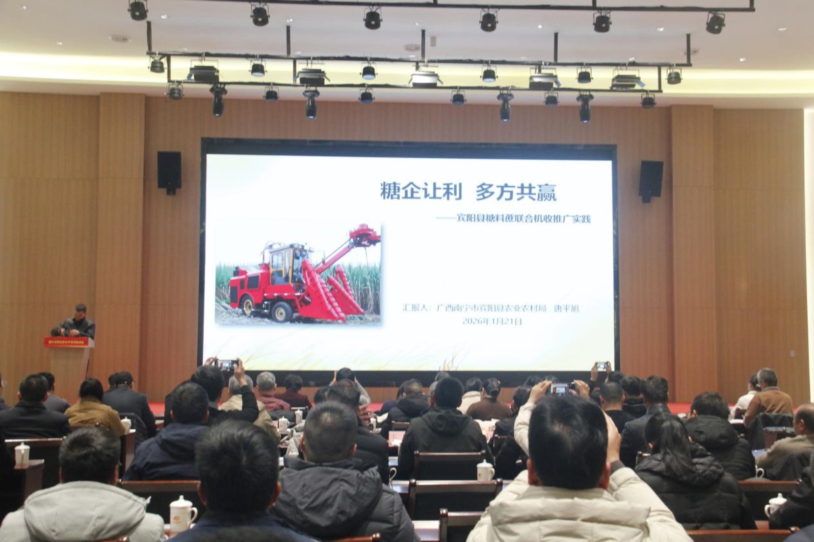 1月22日,由农业农村部农业机械化总站主办,广西壮族自治区农业机械化服务中心,河池市农业机械化服务中心、罗城仫佬族自治县人民政府承办的2026年提升甘蔗机收水平现场推进会在广西河池市罗城仫佬族自治县成功举办。