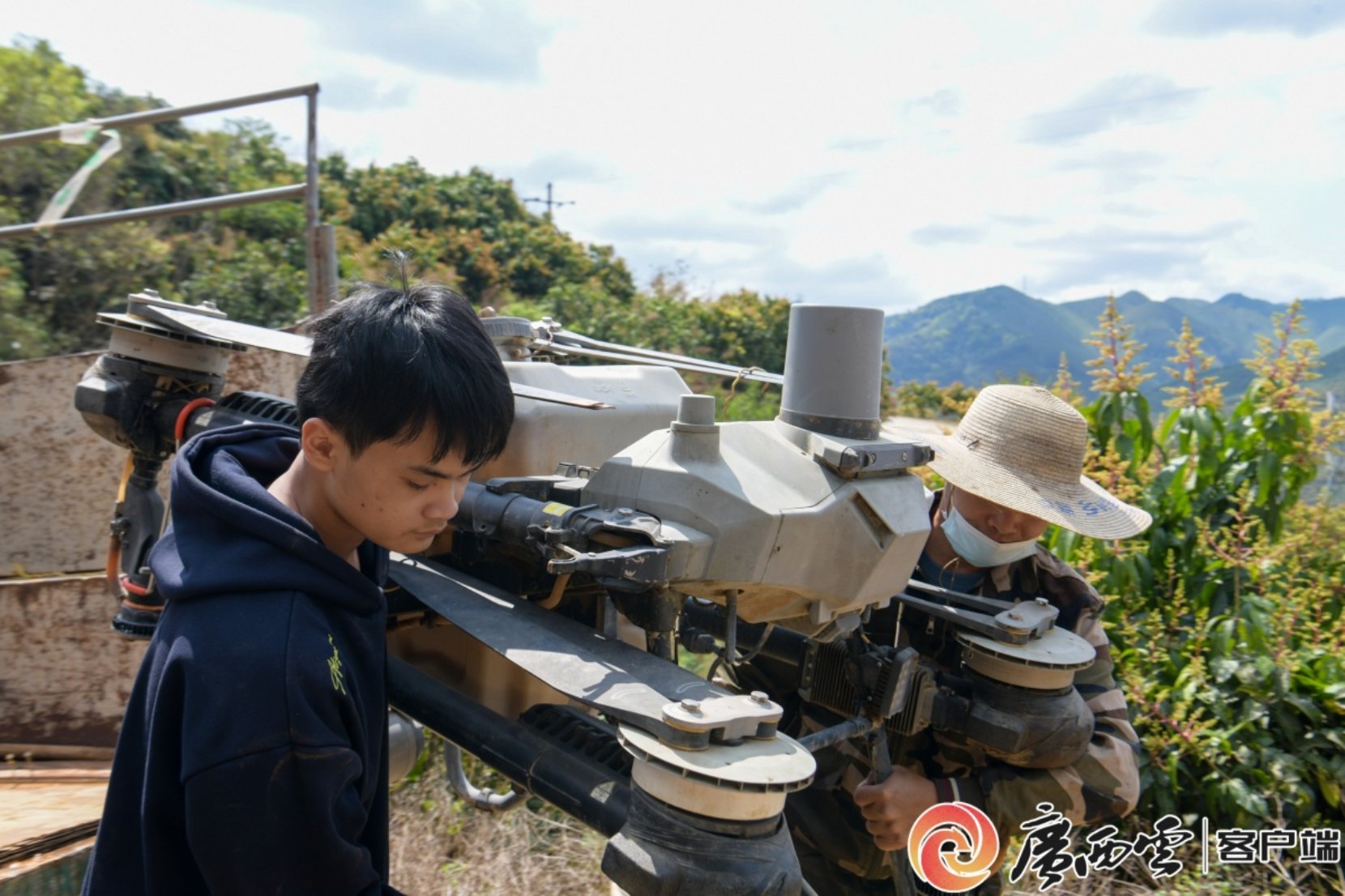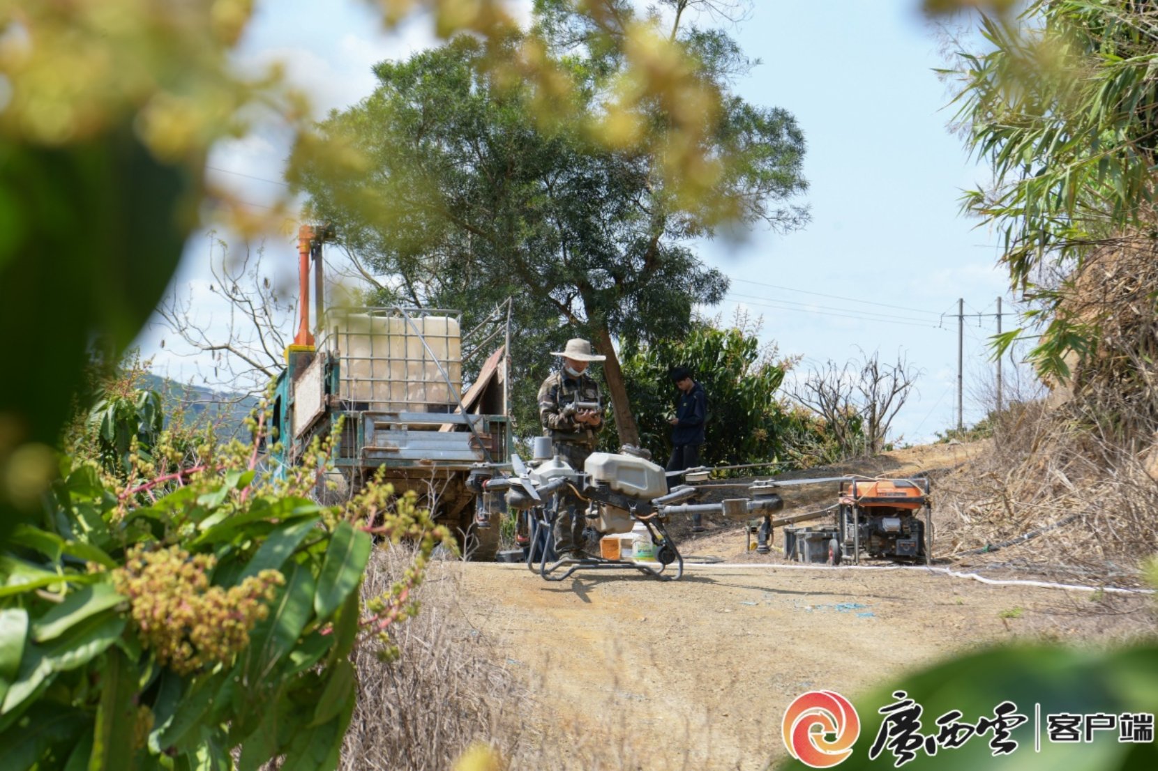 图为果农使用无人机作业前准备 杨啟建 摄