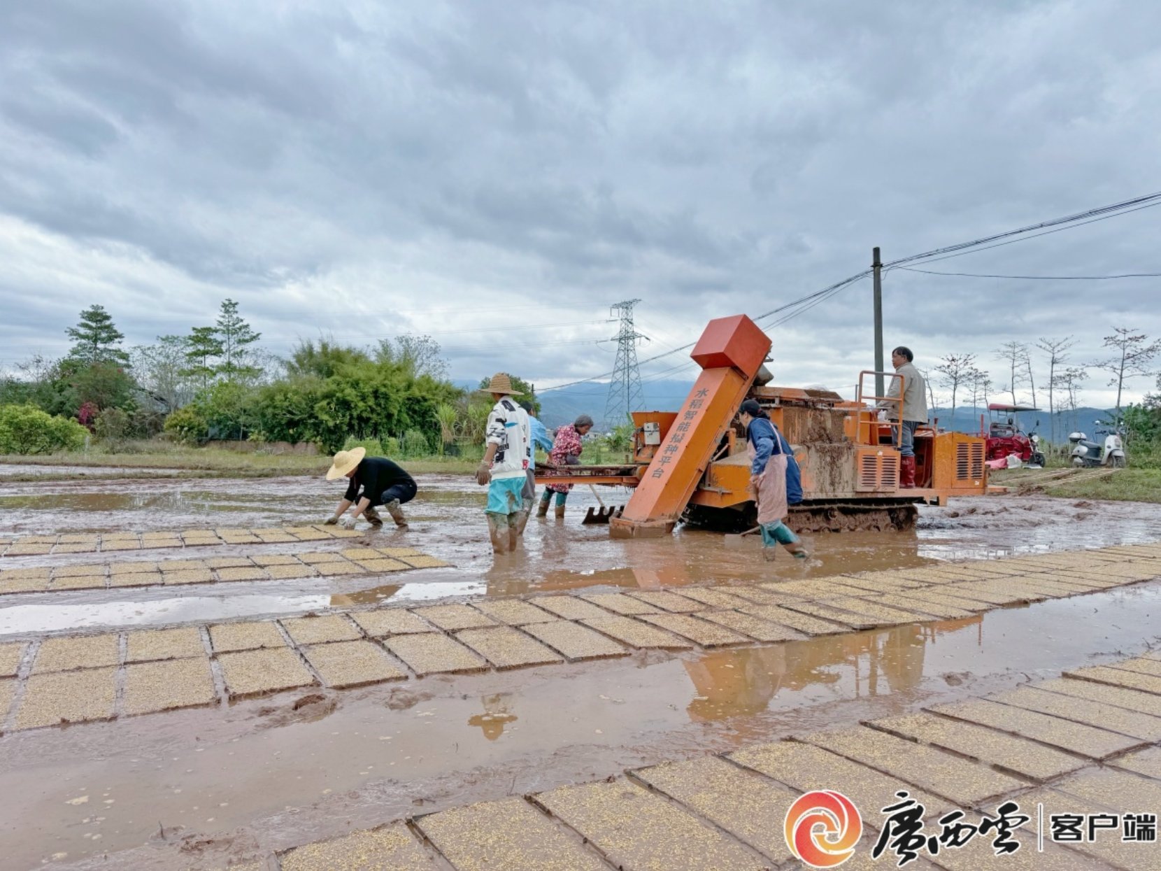 3月11日,玉林市北流市2026年春耕春播现场会在大里镇六厚村举办,水稻智能播种机开足马力作业,铺盘、上浆泥、精量播种、施壮秧剂一气呵成,为春耕粮食生产按下“科技加速键”,助力早稻育秧提质增效。