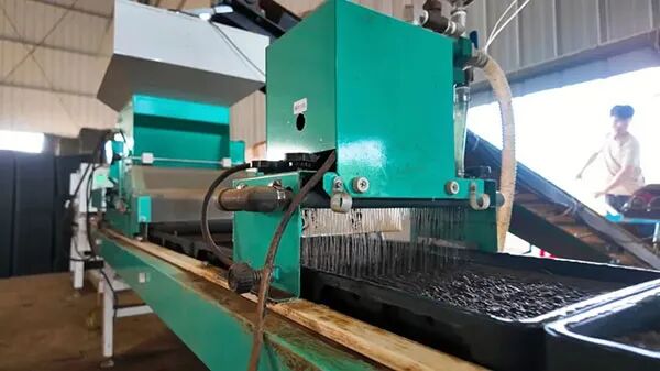 在博白县中部华谷农业水稻产业中心的育秧中心,种粮大户利用智能育秧设备进行育秧作业。李博 摄