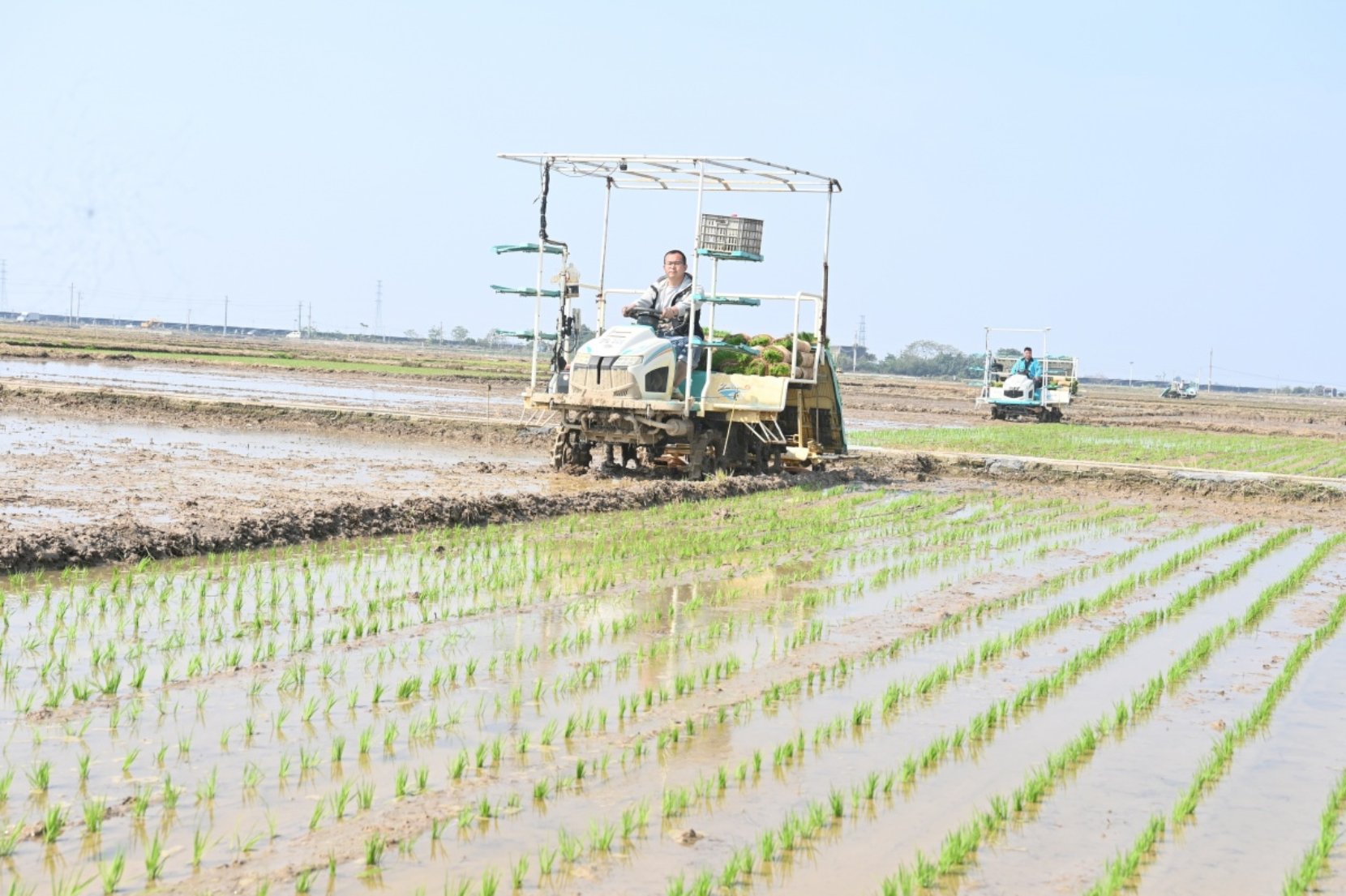 智慧农机开展早稻春插作业。 林启波 摄