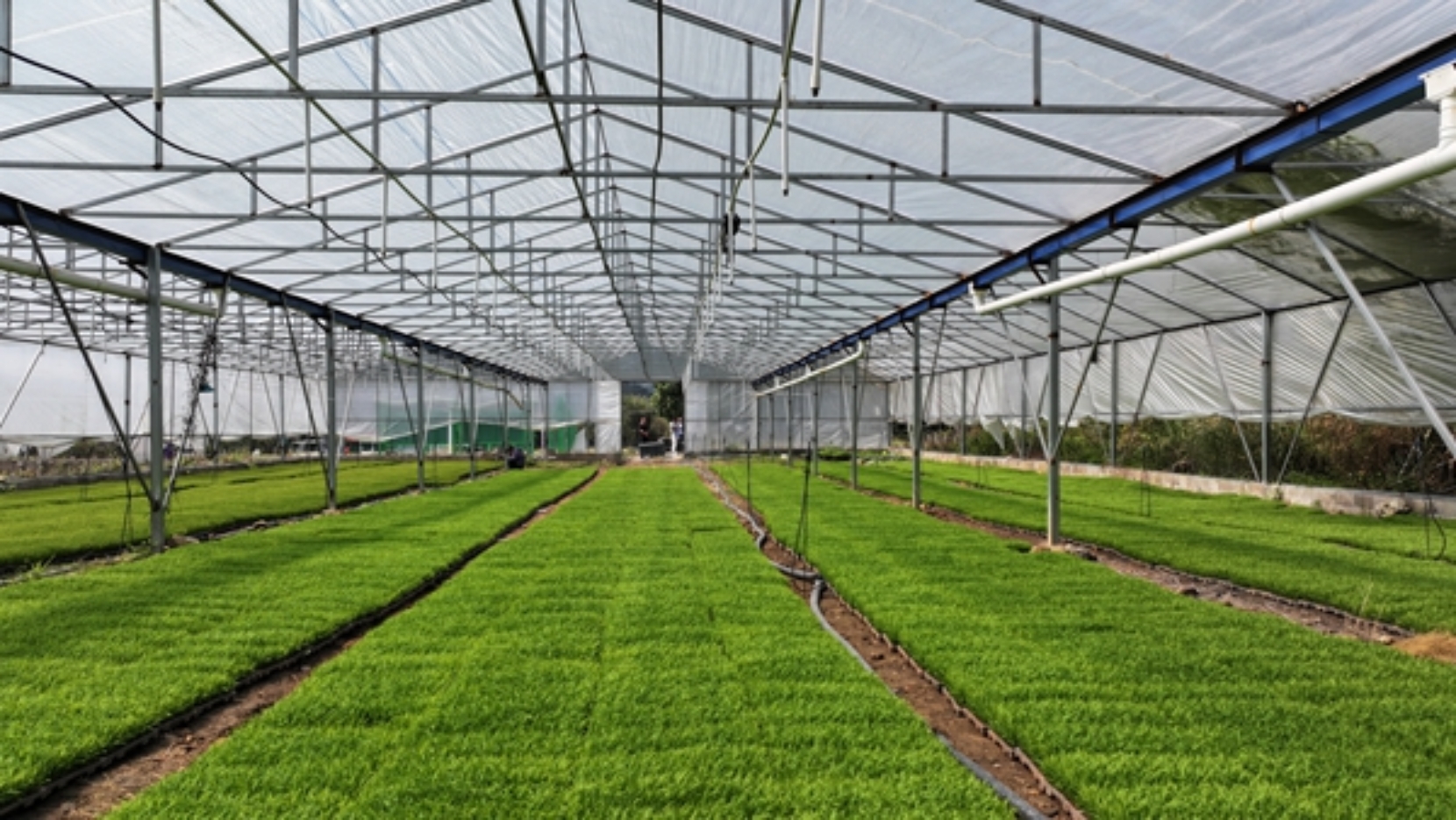 走进育秧大棚,一排排育秧盘整齐排列,嫩绿的秧苗长势茁壮、郁郁葱葱,一眼望去生机勃勃。工作人员依托科学布局,开展精细化管护,全力为秧苗生长营造适宜环境。大棚内配备水肥喷灌系统,可根据秧苗不同生长周期,精准供给养分和水分,既避免了资源浪费,也让每一株秧苗都能均匀吸收营养。“我们会根据天气变化和秧苗生长需求,及时调整大棚通风、遮阳时长,精准把控生长环境,保证秧苗健壮生长,让秧苗后续移栽后抗逆性更强。”工作人员一边查看秧苗长势、调整通风口,一边介绍。