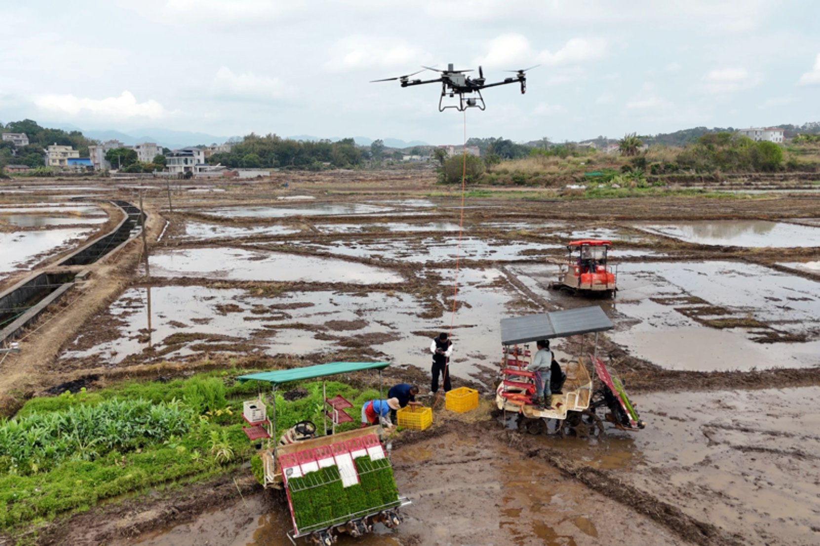 春回大地,沃野焕新,阳春三月正是春耕春种的黄金时节。广西玉林市容县深入落实“藏粮于地、藏粮于技”战略,抢抓农时、精准发力,大力推广无人机吊运秧苗与机械化插秧“组合拳”,以科技为传统农耕装上“智慧引擎”,推动春耕生产提质增效,全力筑牢全年粮食生产根基,绘就侨乡大地万象“耕”新的春日图景。