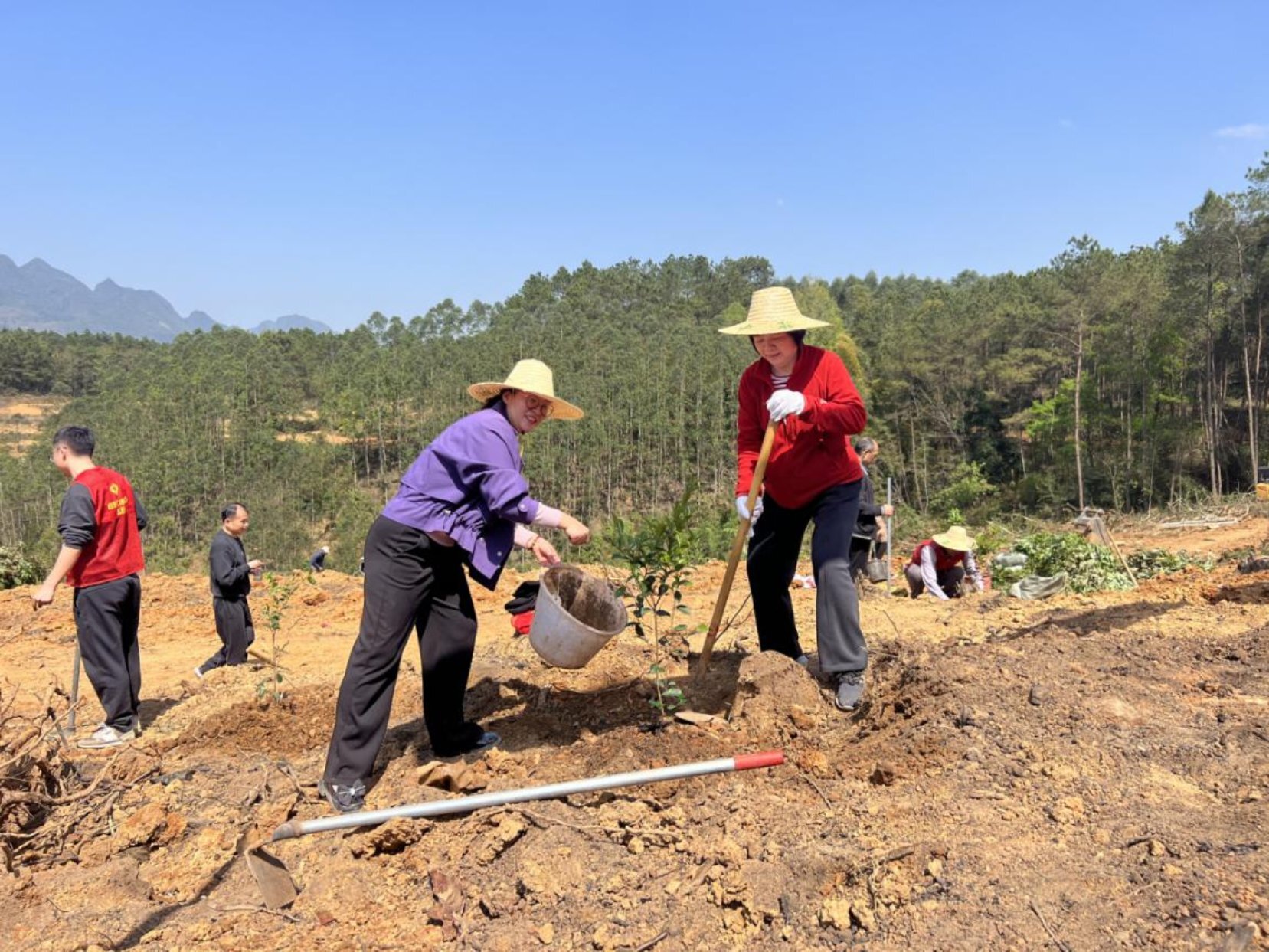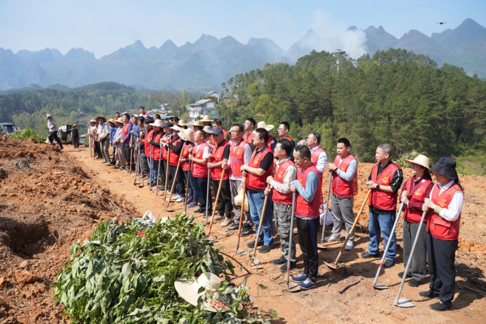 春回大地万物苏,植树播绿正当时。3月12日,在第48个植树节来临之际,自治区农机中心赴河池市都安瑶族自治县百旺镇仁合村开展义务植树暨清风护绿行动,以实际行动深化结对帮扶、共促乡村振兴。自治区农机中心、都安瑶族自治县农机中心,百旺镇政府、仁合村、东庙乡地同村有关人员以及当地群众共75人参加植树。自治区农机中心党委副书记、二级巡视员范军灿,中心副主任杨若召、都安瑶族自治县农机中心副主任韦国、百旺镇副镇长刘莉出席了开工仪式。