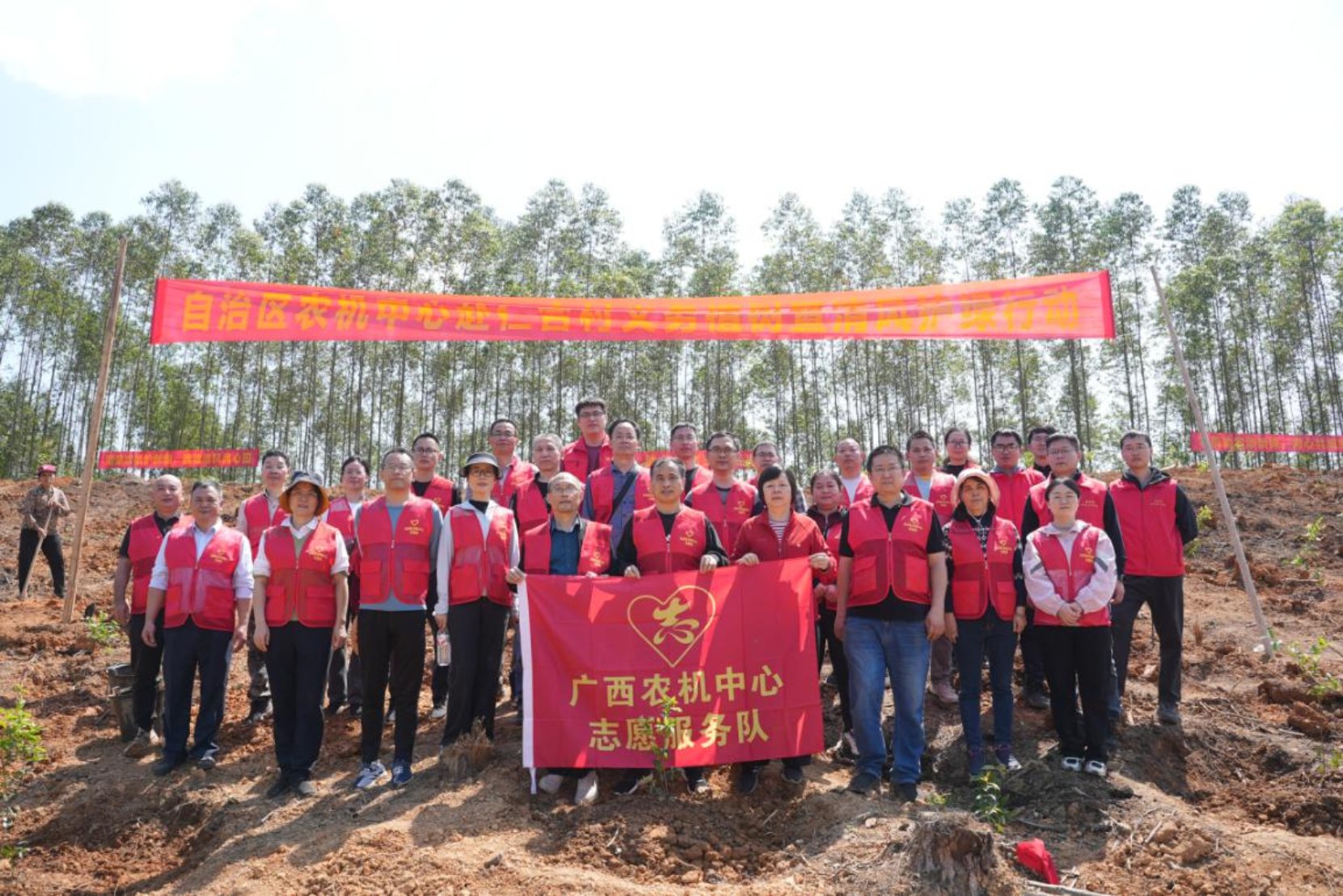 自治区农机中心志愿服务队在植树工作结束后合影