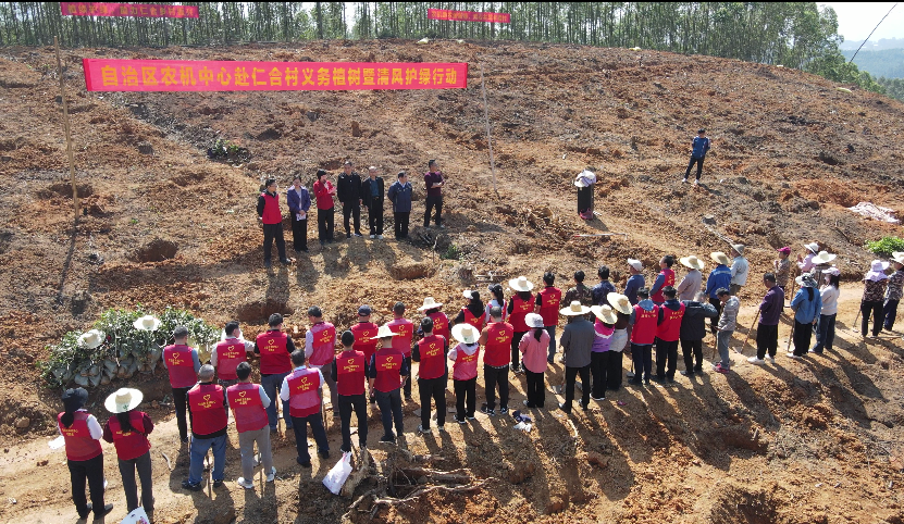 自2016年定点帮扶仁合村以来,自治区农机中心十年如一日,始终扛起帮扶责任,坚持“绿水青山就是金山银山”理念,积极发挥行业优势,推动农机化与生态保护深度融合,通过运用高端智能先进农机装备和高效节本绿色现代化农机新技术,突出绿色生态产业发展,助力打造立体循环农业,推动油茶、鹌鹑等特色产业与生态保护协同发展。这次植树活动,就是结合村茶油产业项目,整合12户30多亩淘汰树种,采用机械整地连片改造,积极探索“油茶+木薯+家禽”生态循环的种养模式,走科学发展、绿色发展之路。
