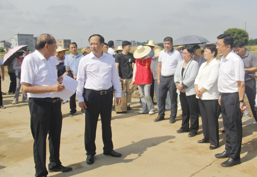 许显辉来到贵港市港北区益农农机专业合作社,现场观摩水稻耕种管收全程智慧化生产、粮食增产智慧农场机械设备演示、农机抗灾救灾应急演练、再生稻收获,听取全区水稻生产机械化情况、贵港市益农农机专业合作社发展情况、测产结果宣布。