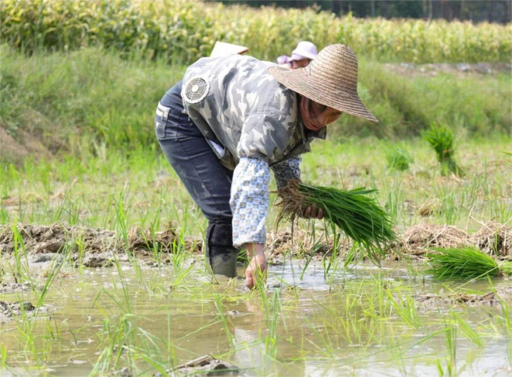 农户们分工明确,分拣、整理秧苗,将其捆扎成便于机械取用的规格,及时为机械作业补充“弹药”,确保插秧工序环环相扣、高效推进。而针对插秧机因田块边角、地形限制难以覆盖的区域,经验丰富的农户们则挽起裤脚踏入水田,以手工补插的方式填补空缺,确保每一寸土地都得到充分利用,为晚稻丰产打下坚实基础。