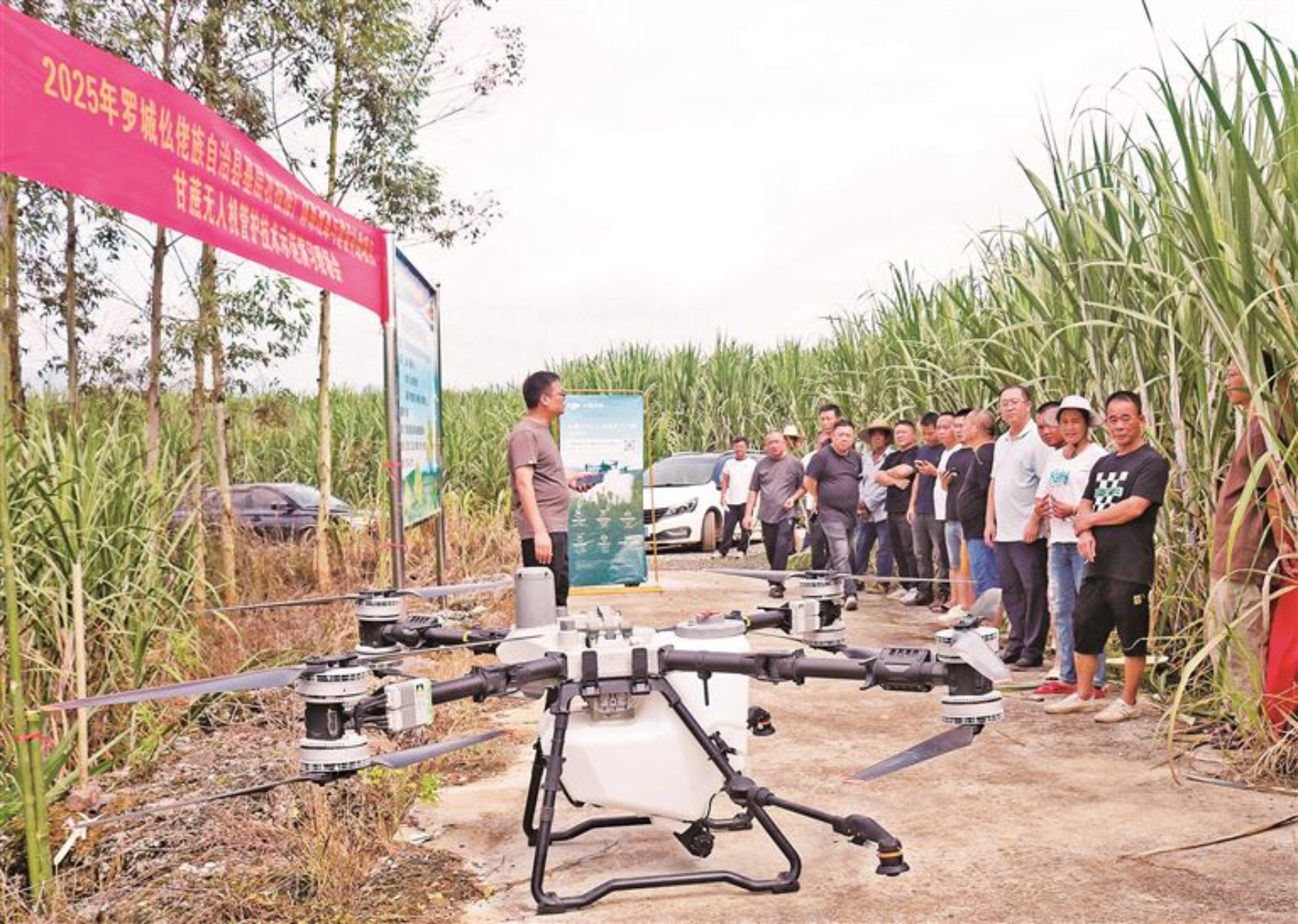 近日,河池市罗城仫佬族自治县农机中心在小长安镇民族村举办2025年基层农技推广体系改革与建设补助项目甘蔗无人机管护技术示范演示现场会。