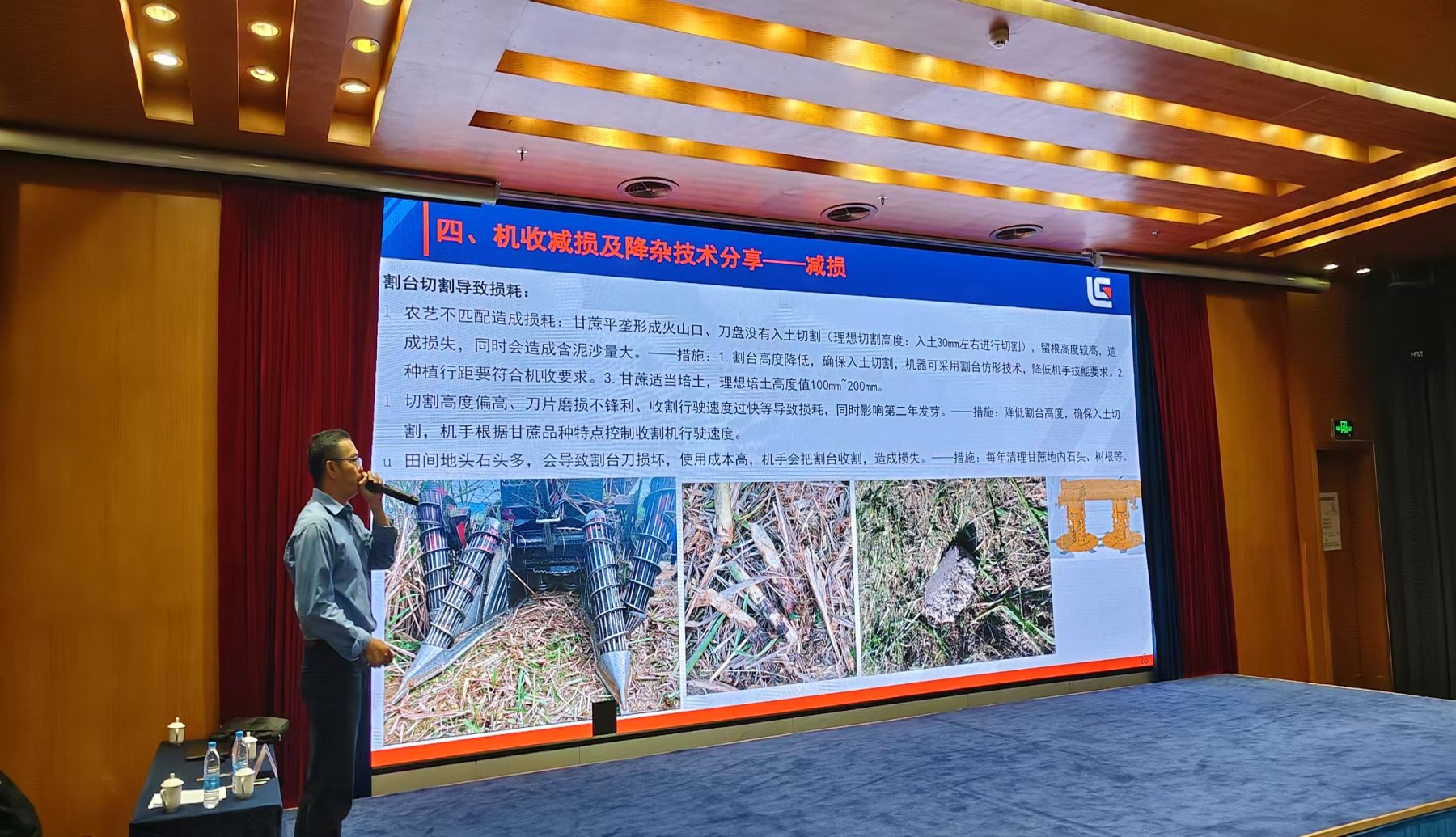 培训课程紧扣实际需求,内容精准务实。广西柳工农业机械股份有限公司工程师罗青康以“机收减损降杂技术和操作理论”为主题,通过讲解切段式甘蔗收获机结构原理详细介绍收获过程,深入剖析了作业中损失率与含杂率偏高的成因,传授机具调整与操作优化实现提质增效的实用技巧,为一线甘蔗机收人员提供切实可行的解决方案。