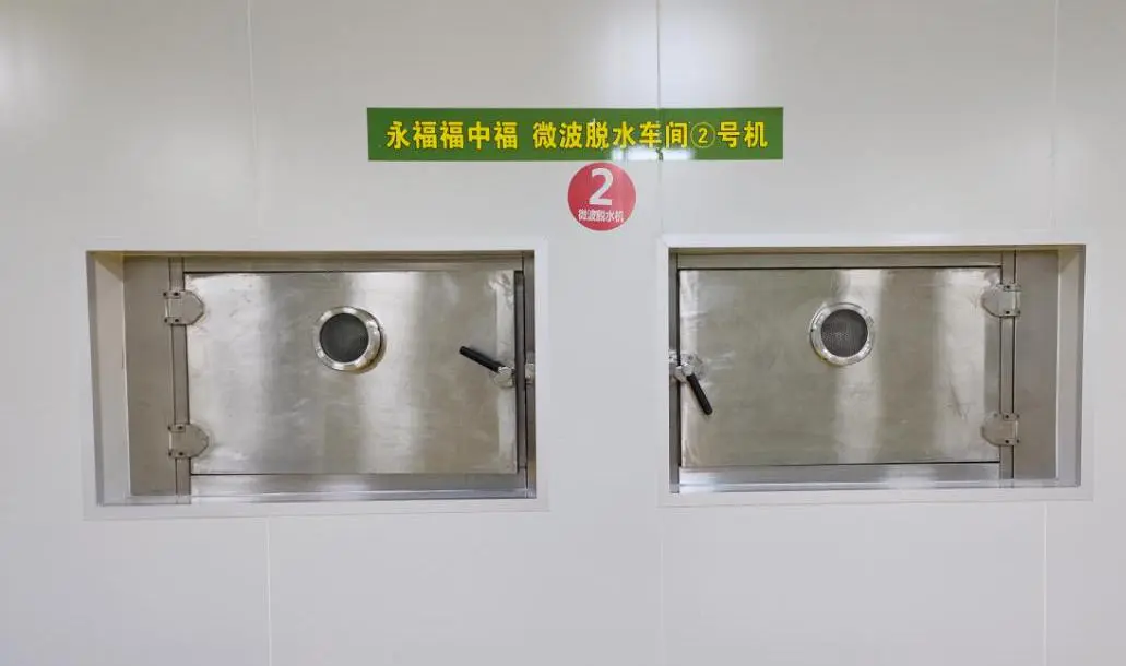 微波脱水工序:采用先进的微波脱水设备,将罗汉果在零下30℃—40℃环境下快速脱水,然后在高真空状态下进行升华脱水。脱水干后的罗汉果片不仅保留了鲜果的色泽、口感和营养成分,还具有较长的保质期。开启微波加热一段时间后设备会自动停止一定时间后再次启动,防止干燥过程中过热,出现炸果、焦化现象。