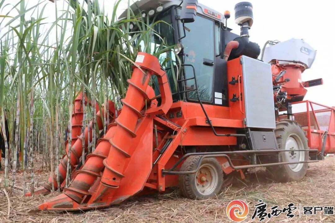 来宾市兴宾区大湾镇甘蔗收割机在作业。广西云-广西日报通讯员 罗文武 摄(资料图)
