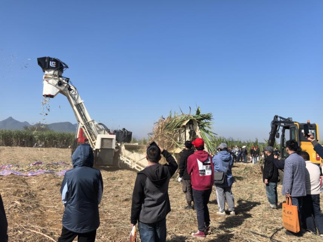 在现场演示会,近300名来自各县(区)的种植大户、机收服务组织、农机合作社、农机部门工作人员及制糖企业负责人齐聚田间,不仅见证了收割机的高效作业,还对现场演示的移动式除杂设备赞不绝口。