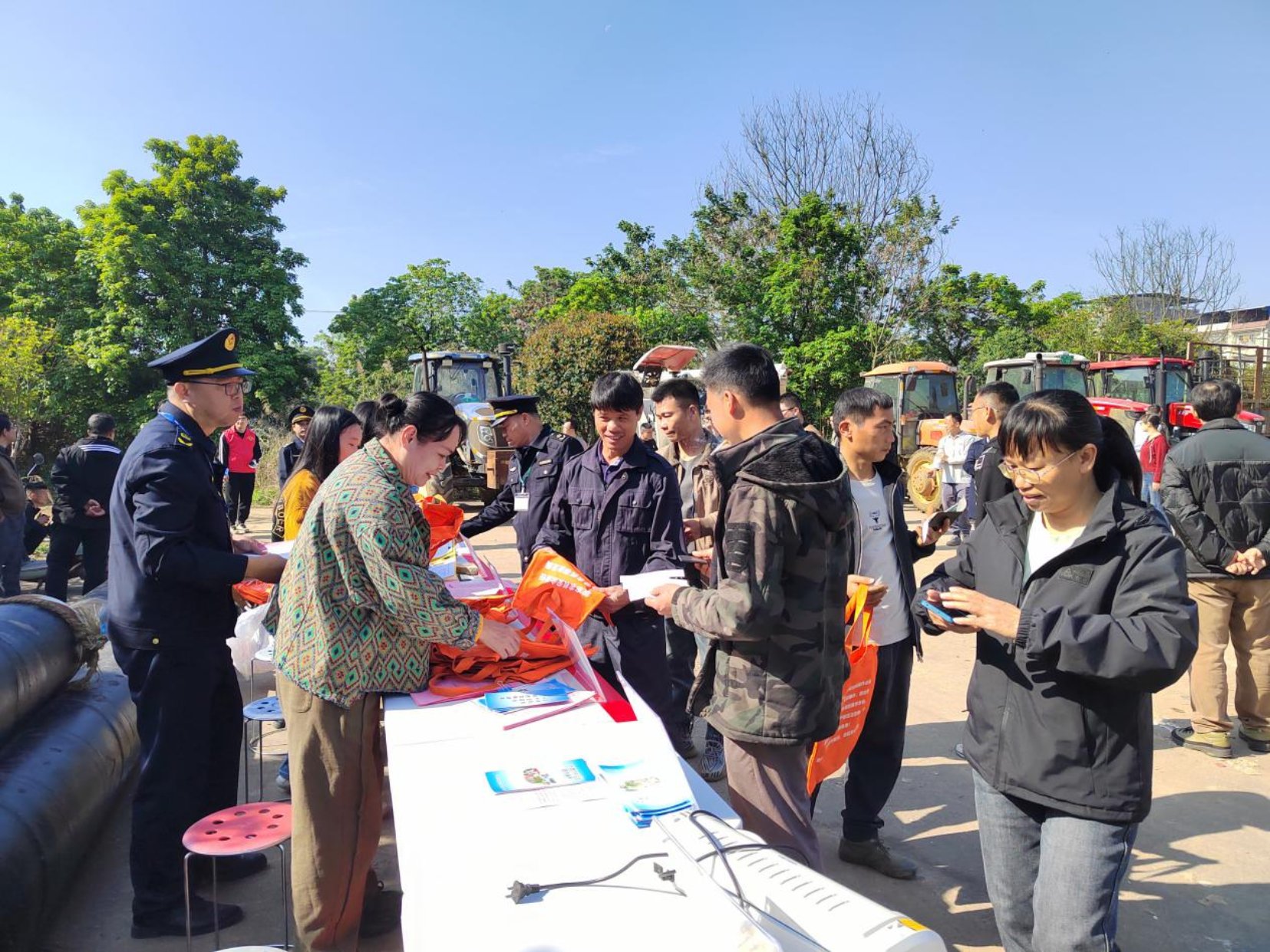 活动现场,人头攒动,气氛热烈。临时搭建的“现场办公点”整齐排列,将原本需要在城区政务大厅办理的繁琐手续,直接送到了农民机手的身边。现场没有高高的柜台,只有亲切的交流;没有复杂的流程,只有高效的服务。从年检签到处、安全宣传教育区,到政策咨询宣传点、农机安全检验线,再到报废回收服务、监理业务办理、农机保险服务、牌证审批发放等办公现场,一应俱全,形成了一个功能完备的“移动政务服务大厅”。