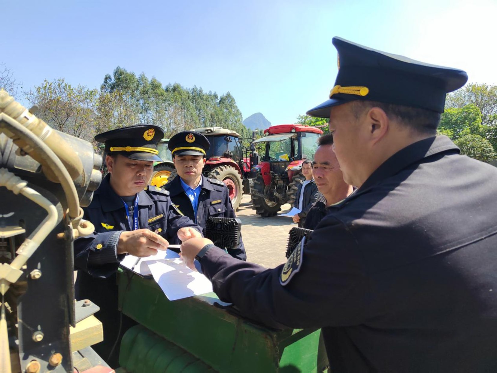 “检验合格,现场打印证件,现场发放!”随着工作人员的操作,一张张崭新的检验合格标志当场交到了机手手中。高效便捷的服务赢得了在场群众的交口称赞。据悉,活动现场共完成拖拉机和联合收割机检验50多台,实现了“即检即签”,极大提升了办事效率。同时,现场还办理新机注册登记2台,转移登记2台,真正做到了“现场检验、现场办理、现场发证”,让机手们“只进一扇门,办成多件事”,有效破解了农机手往返跑、多头跑、耗时长的难题,显著降低了群众的办事成本,提高了政务服务效能。