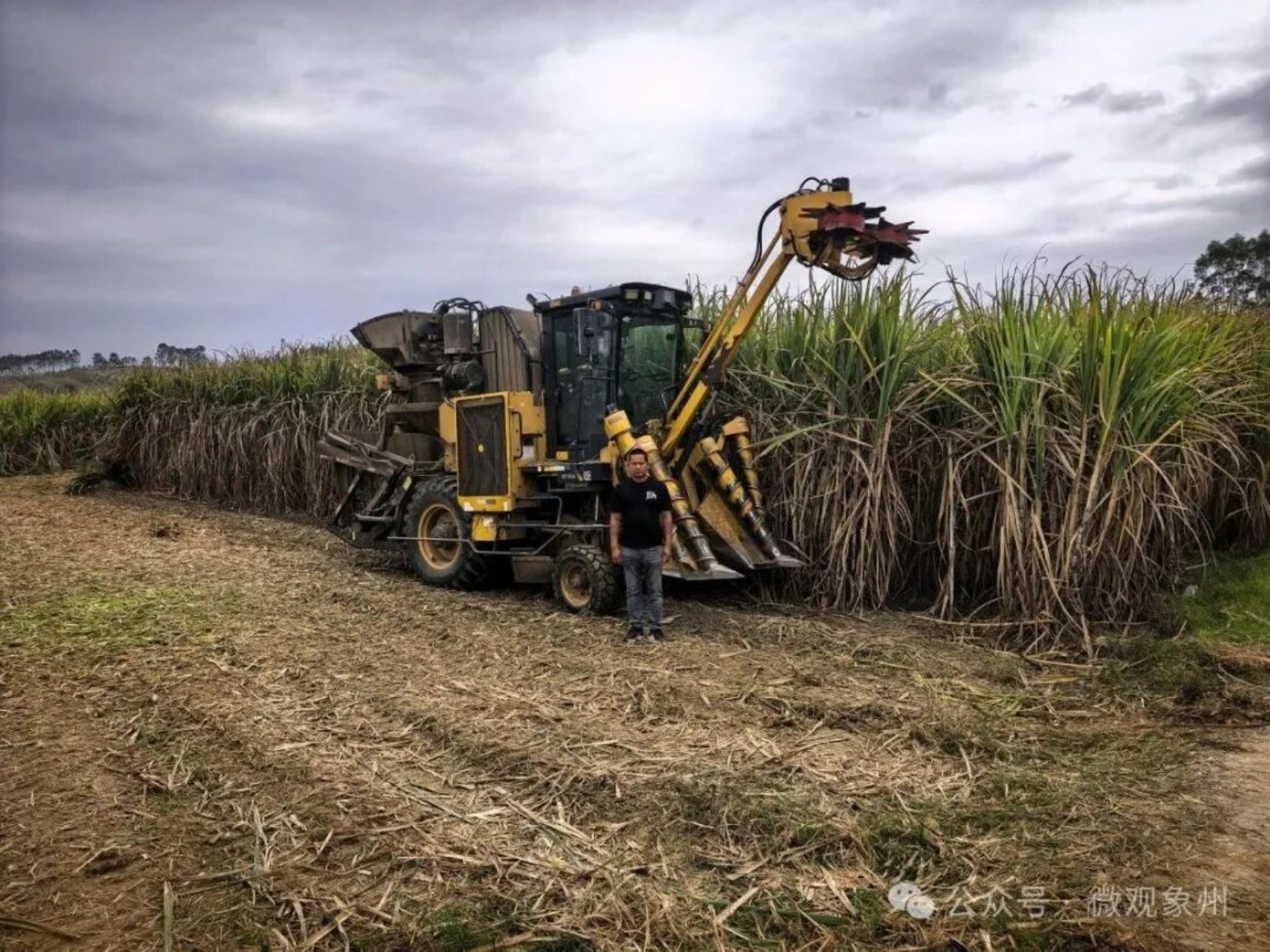 眼下正值春耕时节,也是甘蔗榨季收割收尾的时候。近日,在来宾市象州县运江镇的甘蔗地里,几台大型联合收割机正在平坦的蔗田里来回穿梭,而在不远处的缓坡地上,割铺机、抓蔗机、除杂机等设备协同作业,一派繁忙景象。这片2000余亩的甘蔗地,是当地种植大户何景波的农场。今年,在象州县农机部门的悉心指导和支持下,他不仅破解了困扰多年的糖料蔗收获难题,还带动周边群众组建机收队,成为当地糖料蔗机械化生产的“领头雁”。