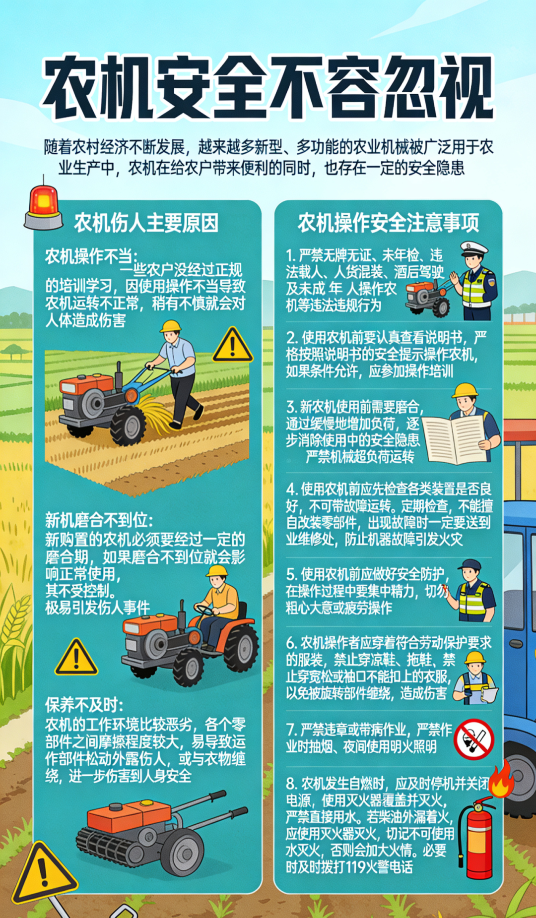 春耕备耕正当时,农机轰鸣闹田间。安全生产是底线,平安守护记心间。为严防农机事故,筑牢安全防线,@广大农机机手,这份安全准则请务必遵守: