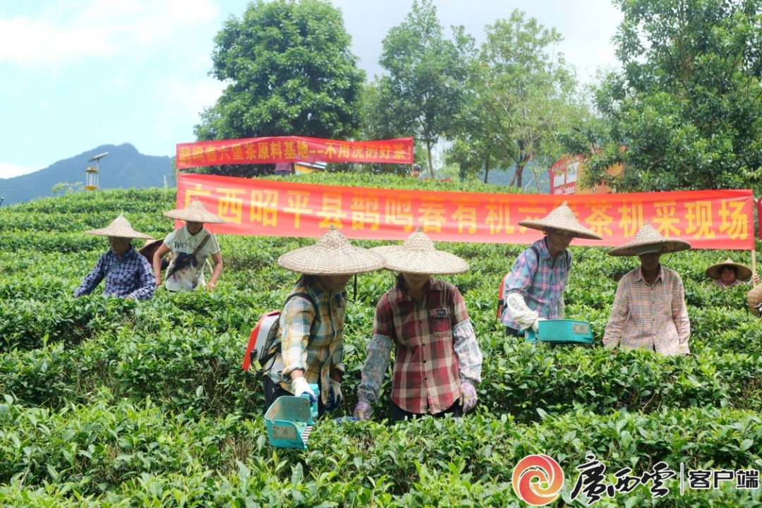 在广西昭平县鹊鸣春茶业有限公司(以下简称“鹊鸣春公司”),有机茶种植基地里茶农们熟练使用采茶机进行采摘,茶叶生产加工线也有条不紊地进行着杀青、冷却、揉捻、烘干等制茶的各道工序。作为2023年广西优势特色农作物生产机械化创新示范基地建设项目之一,鹊鸣春公司基地从茶树种植到茶叶加工,每个环节都高度机械化和智能化。