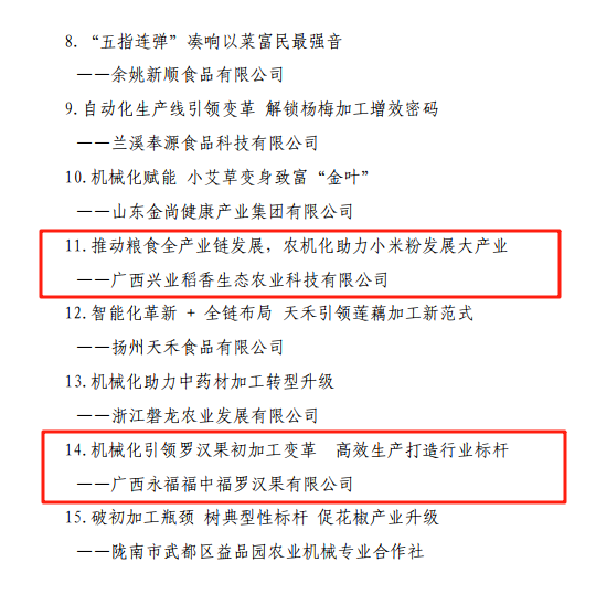 12月2日,农业农村部农业机械化总站公开推介19个2025年农产品产地初加工机械化典型案例,其中,广西共有2个案例成功入选,分别是米粉初加工典型案例和罗汉果初加工典型案例。