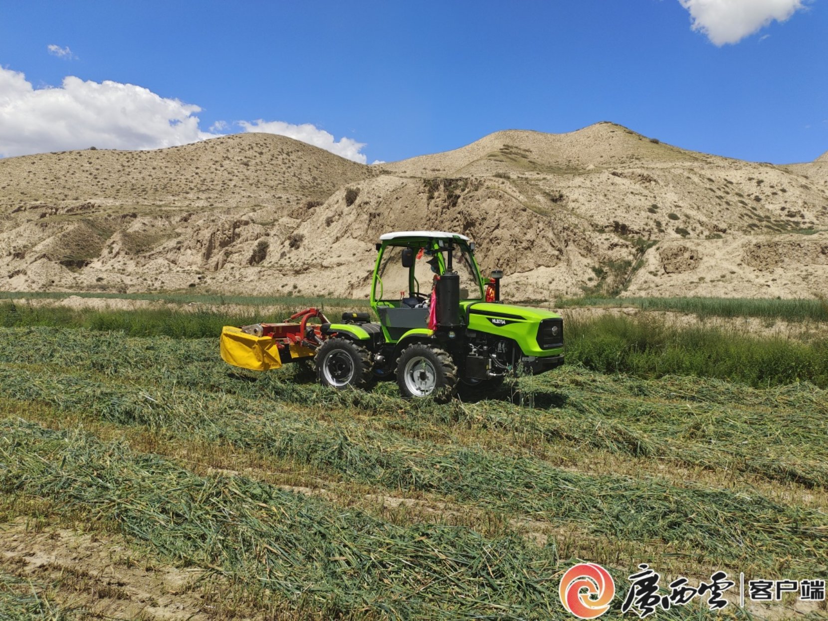 惠来宝公司生产的山地拖拉机在甘肃戈壁收割苜蓿草。合浦惠来宝机械制造有限公司供图