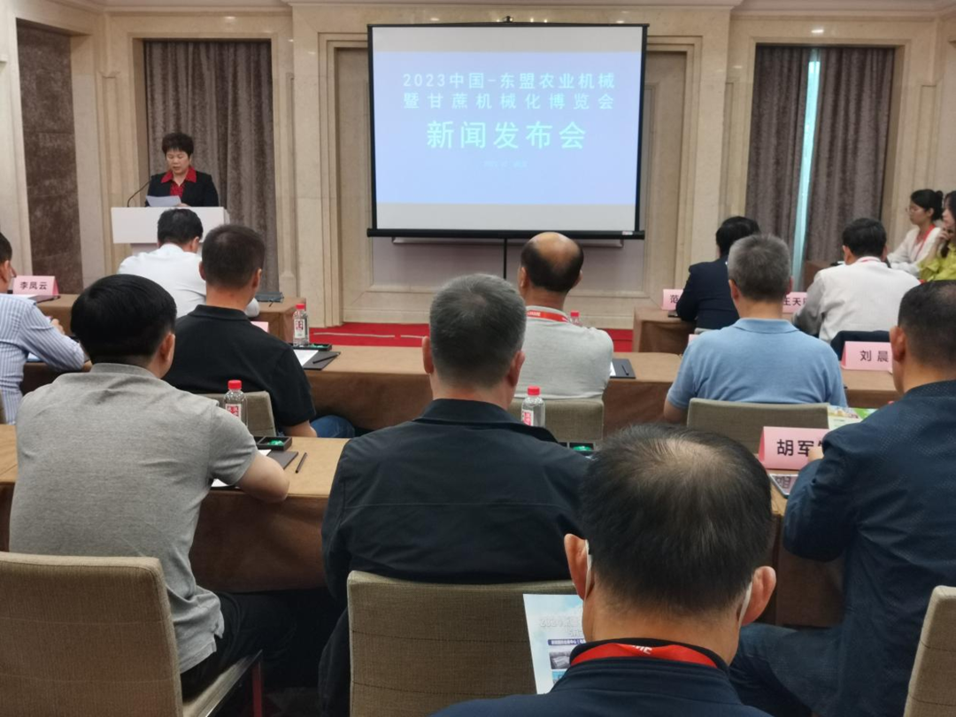 10月26日至28日,2023中国国际农业机械展览会在武汉国际博览中心举行,其间,10月27日下午1时30分,2023中国—东盟农业机械暨甘蔗机械化博览会(以下简称博览会)新闻发布会在武汉国际博览中心会议中心举行。中国农业机械化协会副会长兼秘书长王天辰,中国农业机械流通协会会长范建华,中国农业机械工业协会监事长李有吉,广西壮族自治区农业机械化服务中心党委书记、主任李凤云,广西农业机械化协会会长李一洪,广西国际博览集团专职外部董事卢波,中国乡村发展基金会处长张远凤等出席发布会。会议由中国农业机械流通协会展览业务部主任柳松主持,李凤云介绍博览会有关情况。