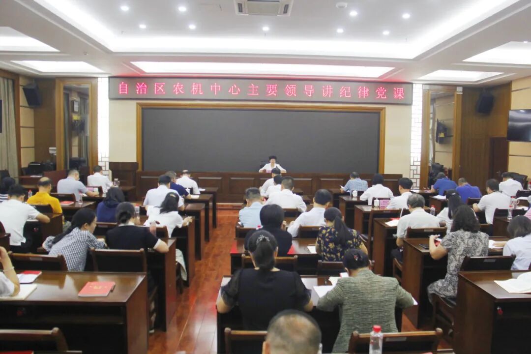 7月1日,自治区农机中心党委书记、主任李凤云为中心全体党员,离退休党员代表讲授党纪学习教育纪律党课。中心党委副书记、二级巡视员范军灿主持会议,中心领导班子成员张小石、杨若召、罗朝东、黄晓斌出席会议。