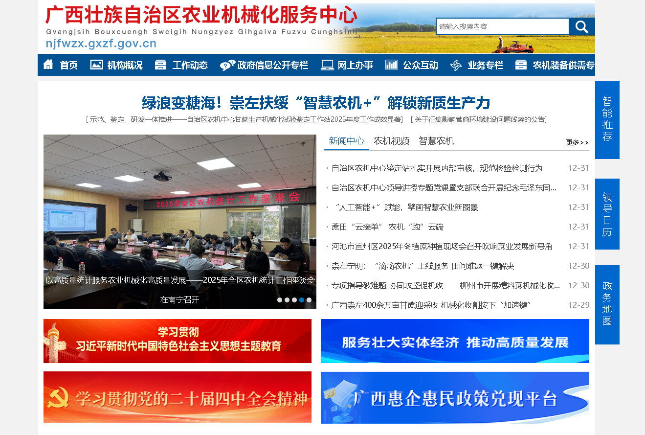 2025年,自治区农机中心网站坚持以服务“三农”为宗旨,紧密贴合农业机械化发展需要,持续优化栏目设置,及时发布农机购置补贴、技术推广、安全监理、政策解读等权威信息,积极构建便民惠农的线上服务平台。网站通过互动渠道及时回应社会关切、解答群众咨询,已成为宣传农机政策、推广农机技术、服务农民群众的重要窗口和纽带。