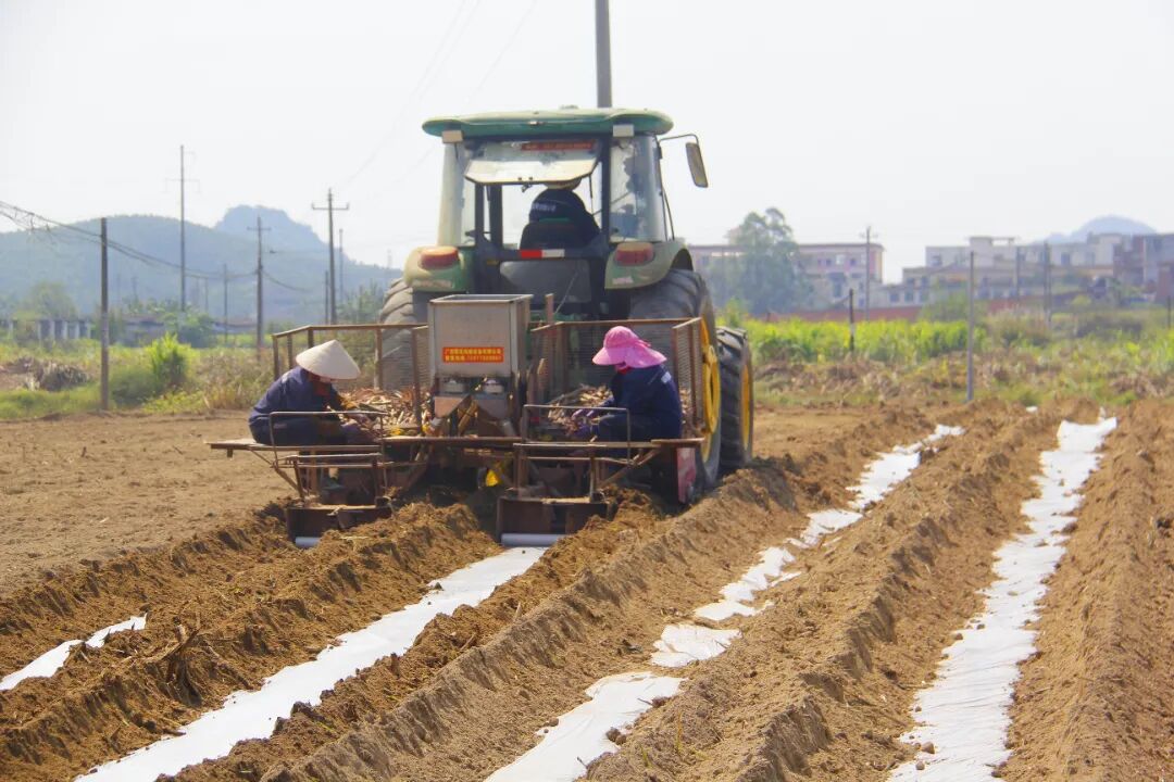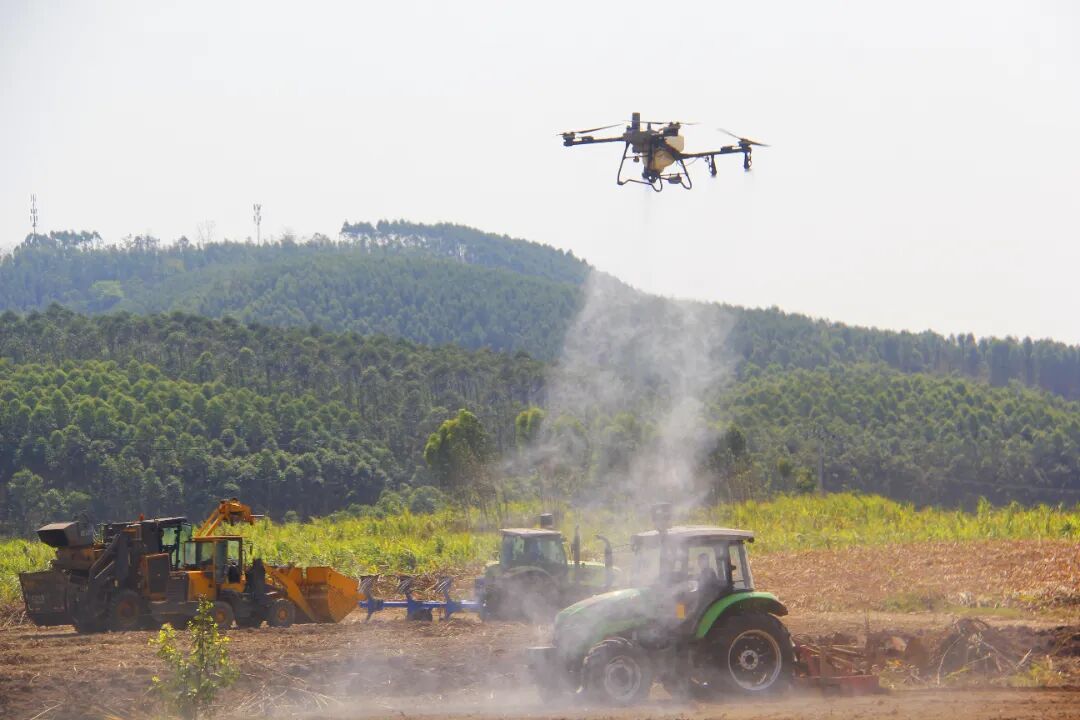 “滴滴农机”联万家,春耕生产顶呱呱。走出课堂,与会代表来到来宾广荣甘蔗良种繁育基地春耕现场观摩。通过“滴滴农机”平台统一调度,一台台丘陵山区先进适用、智能高效、绿色环保的农业机械有序开展春耕作业。一体化甘蔗种植机、拖拉机、无人植保机高效作业,热火朝天,机器轰鸣,共同奏响了桂中大地春耕生产的“交响曲”。
