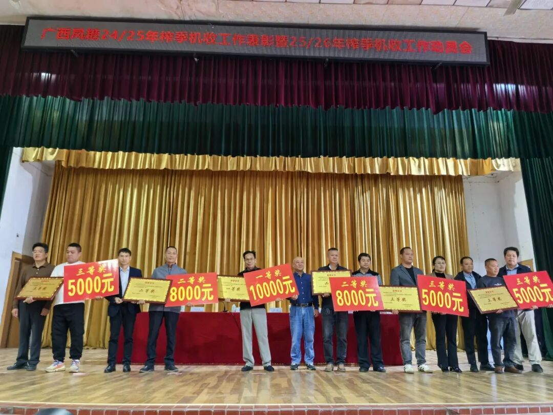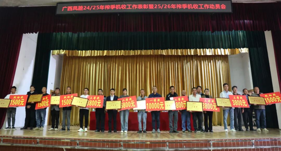 会议对上一榨季表现突出的机收服务组织进行了表彰。其中,广西凤糖共评选出6家优秀合作社,江苏沃得、洛阳辰汉各评选出4家,合浦惠来宝从其设备用户中评选出10家优秀的分步式机收加工站。会议号召其他服务组织以先进为榜样,对标先进、争创一流,共同为推动甘蔗机收水平提升和糖业高质量发展贡献力量。