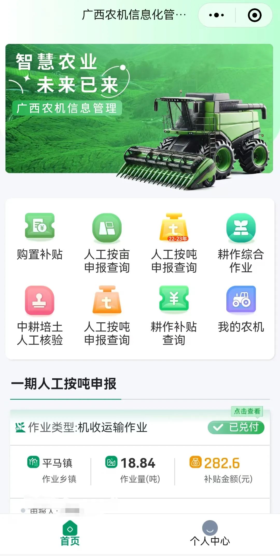 广西农机信息化管理平台通过整合农机购置补贴、牌证管理、驾驶员信息等50万至60万条数据,首次实现全区农机资源“一张图”动态管理。用户通过小程序还可实时查询购置补贴、作业面积核验、作业补贴申报等相关情况,并借助北斗定位系统追踪农机位置,实现智能调度和作业效率提升。