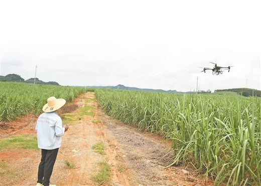 “所喷之处甘蔗需要施肥。”中粮广西益兴现代农业科技发展有限公司负责人陆光艺介绍,无人机飞行地块甘蔗长势不一,所以选择精确追肥,力争甘蔗共同进步。